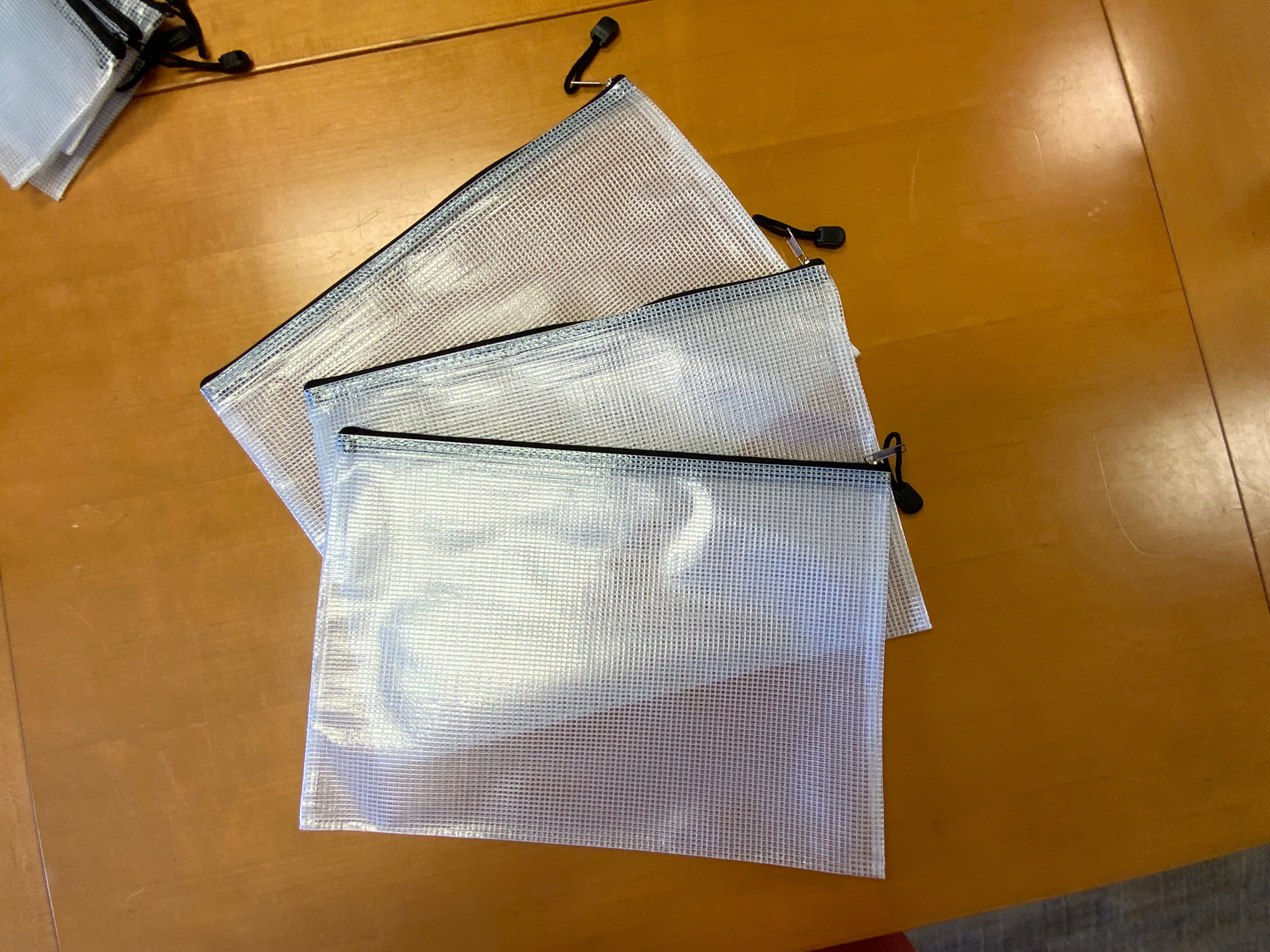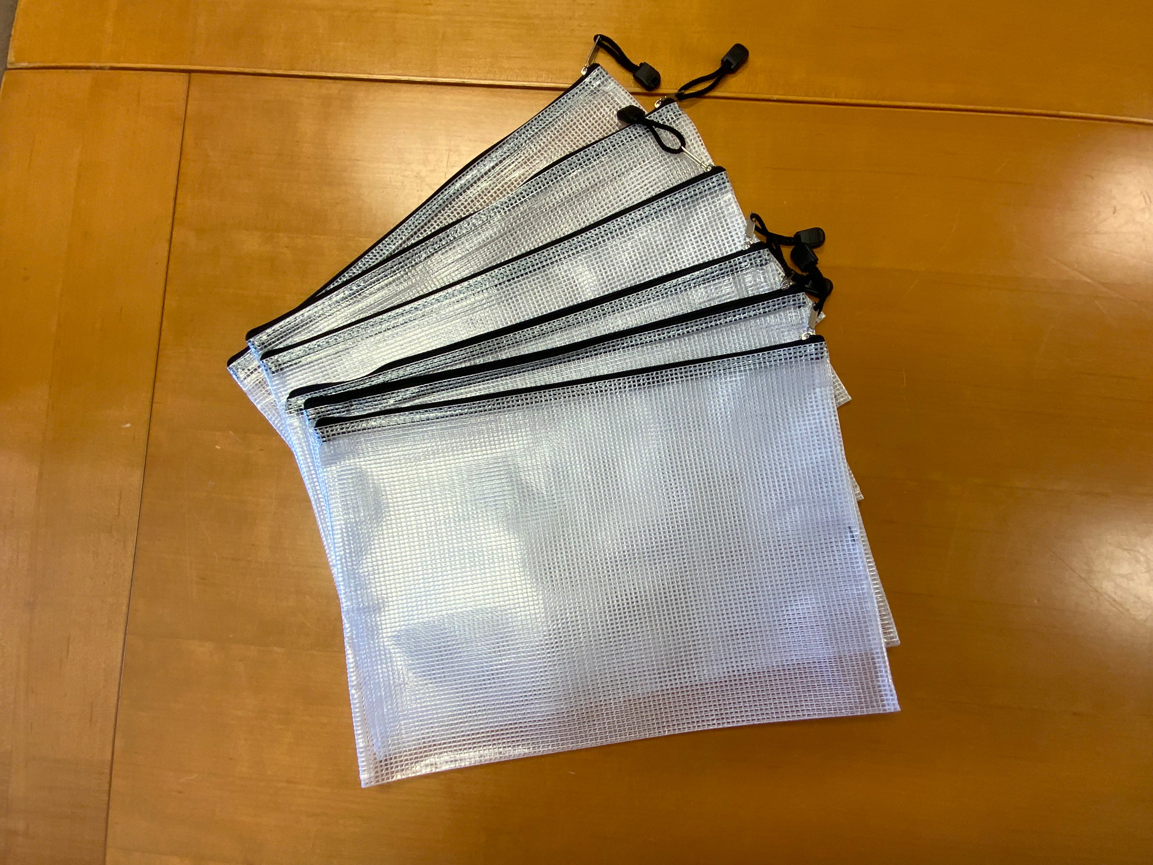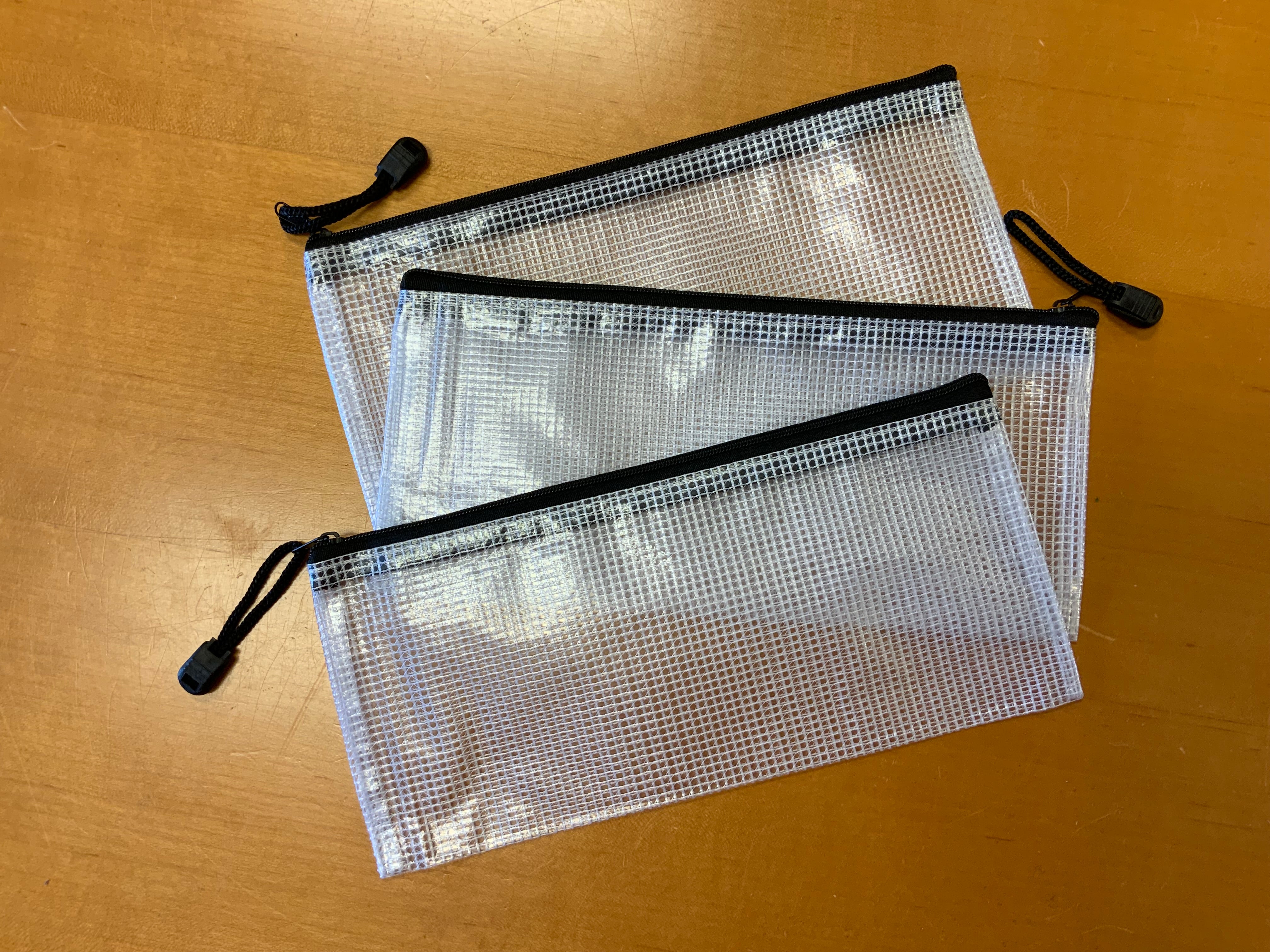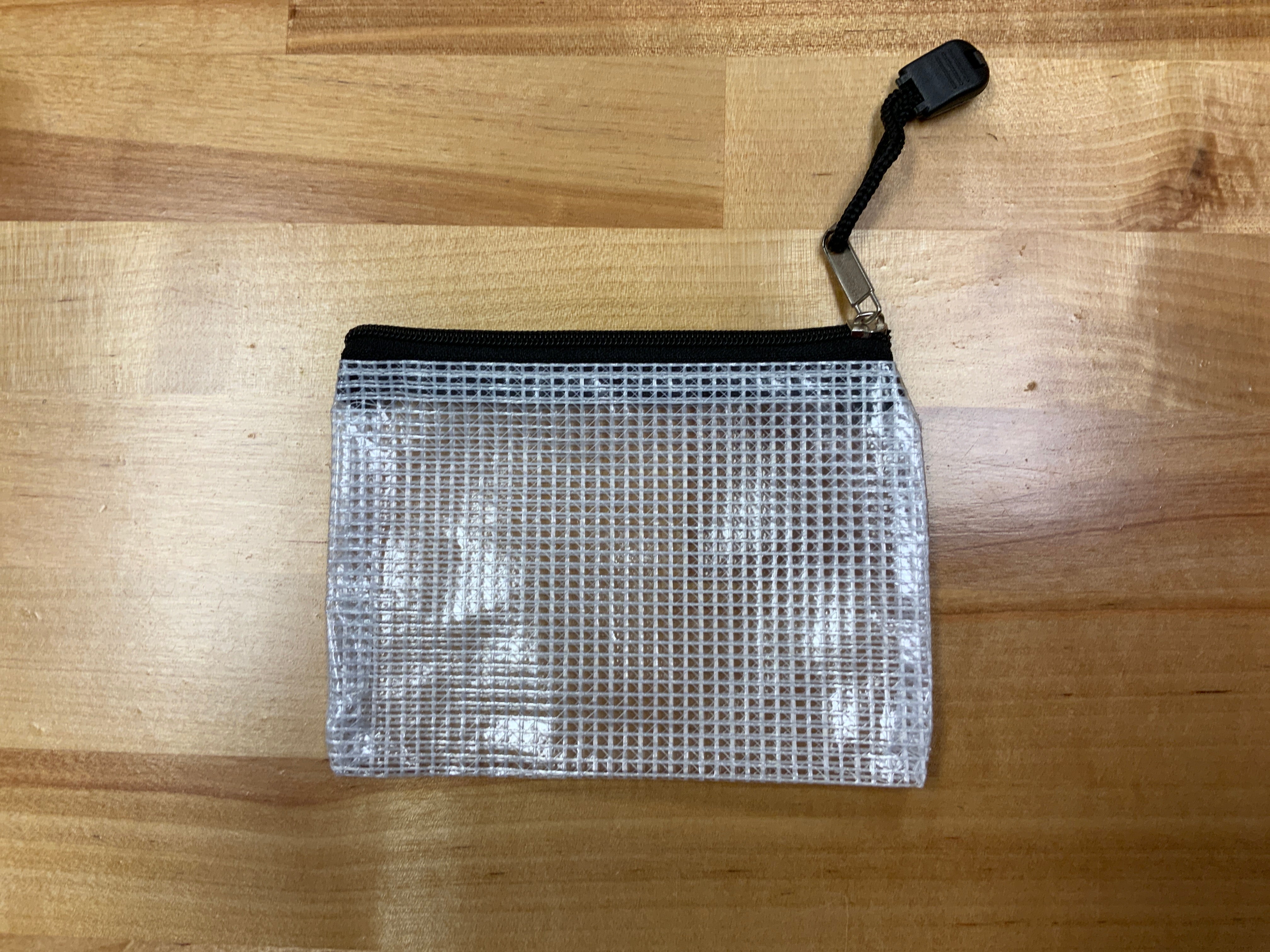 A very useful mesh, water resistant, semi clear zippered project pouch.