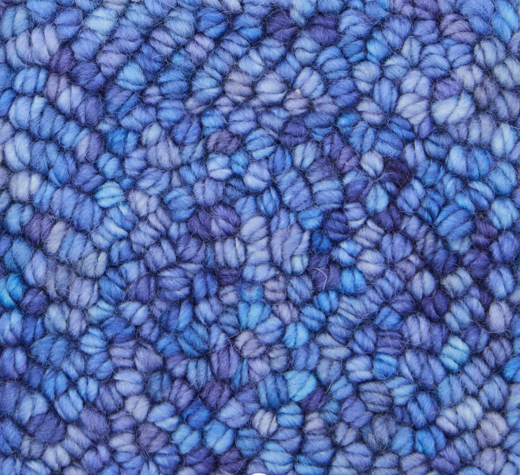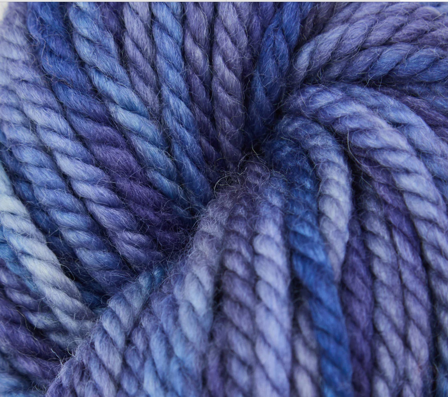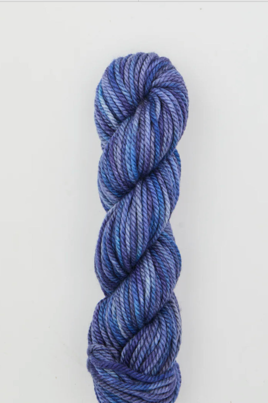 A single color yarn composed of a range of mid-tone blues moving from rich cobalt to bright sapphire, with flecks of purple-blue and grey.