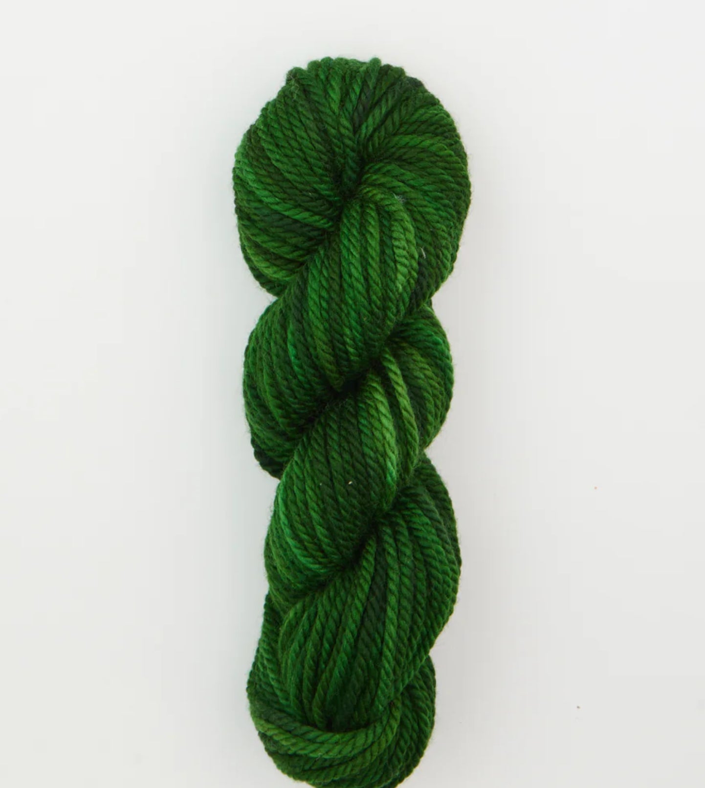 Dark evergreen tone speckled with black. Club Moss Dark and Club Moss Light are part of the same dye family and work harmoniously together when used in the same piece.