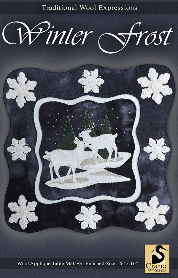 “Winter Frost" is Crane Designs newest winter piece. A perfect wool applique piece to display all winter long. It comes with fun and easy embroidery stitches that even the beginner can master. The pattern includes instructions and lots of illustrations for easy to follow. So much fun and a great heirloom piece to adorn your home decor for years to come. You can order our easy kit...or pull from your stash with only 4 colors of wool needed!