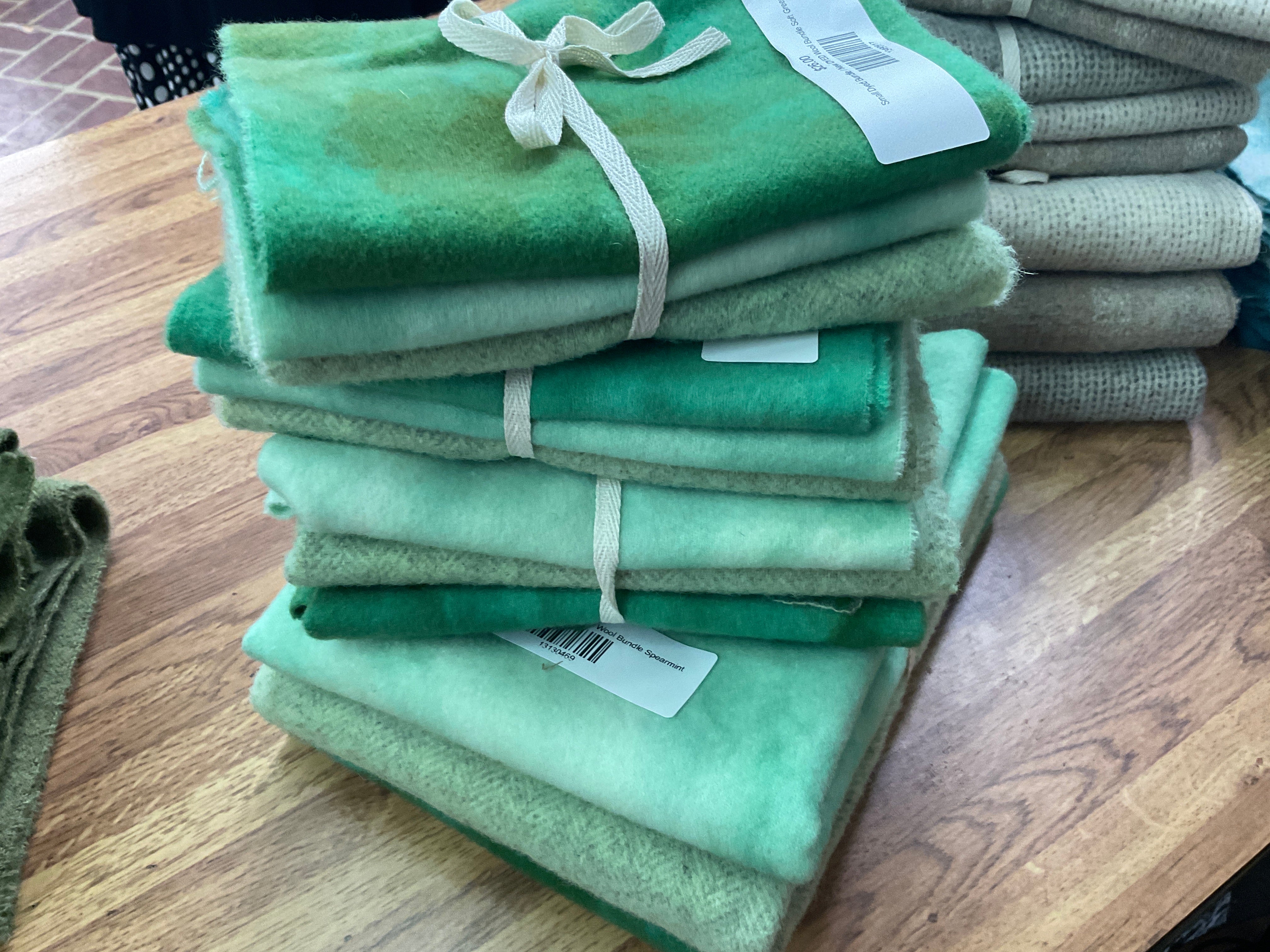 These bundles are fat, warm, 100% wool, washed and fulled and ready to create with! Perfect for any rug hooking, appliqué, stitching or any kind of sewing, that you want to use the very best wool, this is it! We have grouped three of our top selling textures by color, washed them to full and soften them, then into the dryer so they are ready for you to create with!