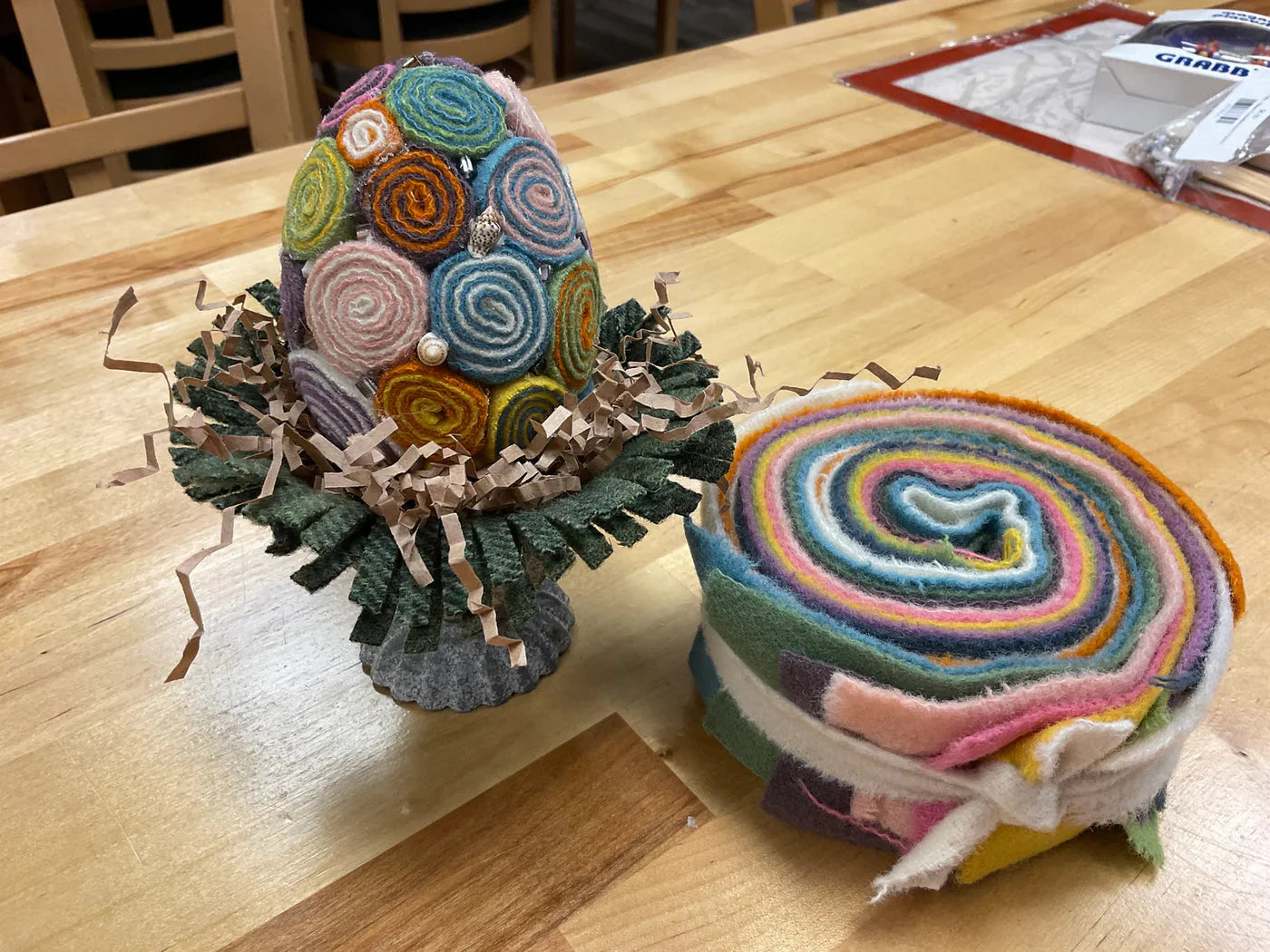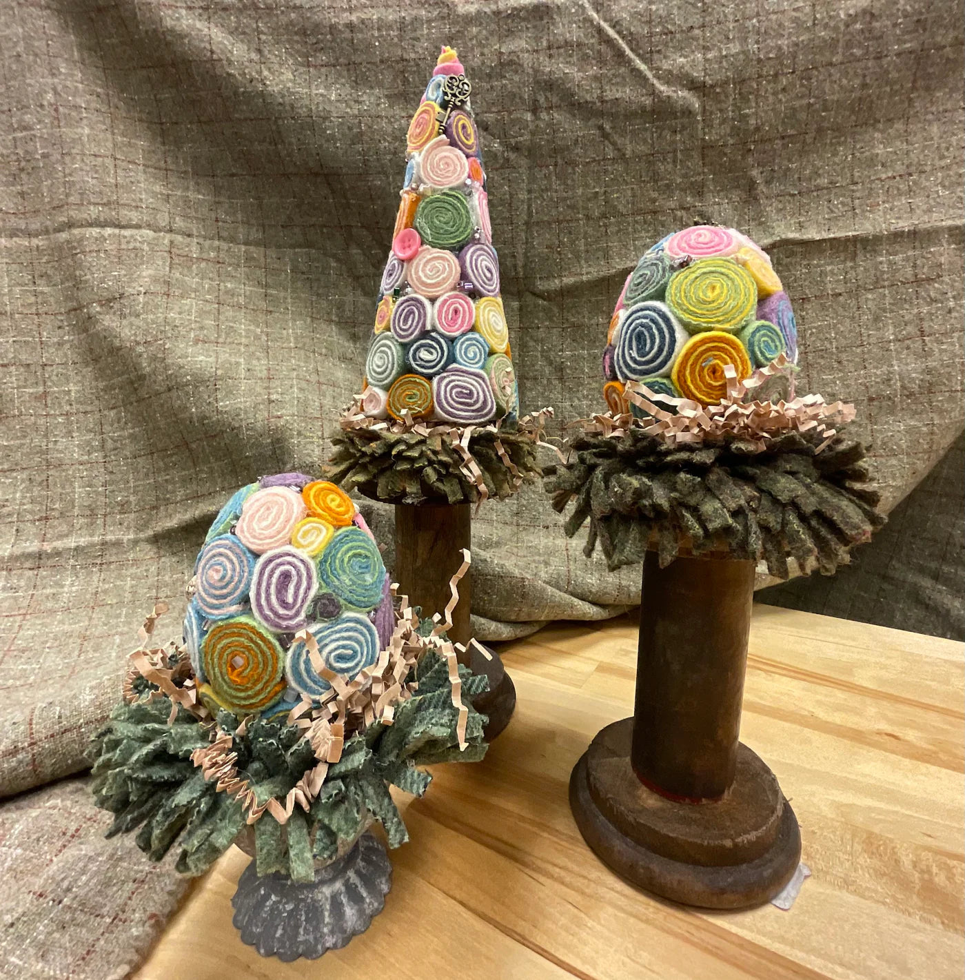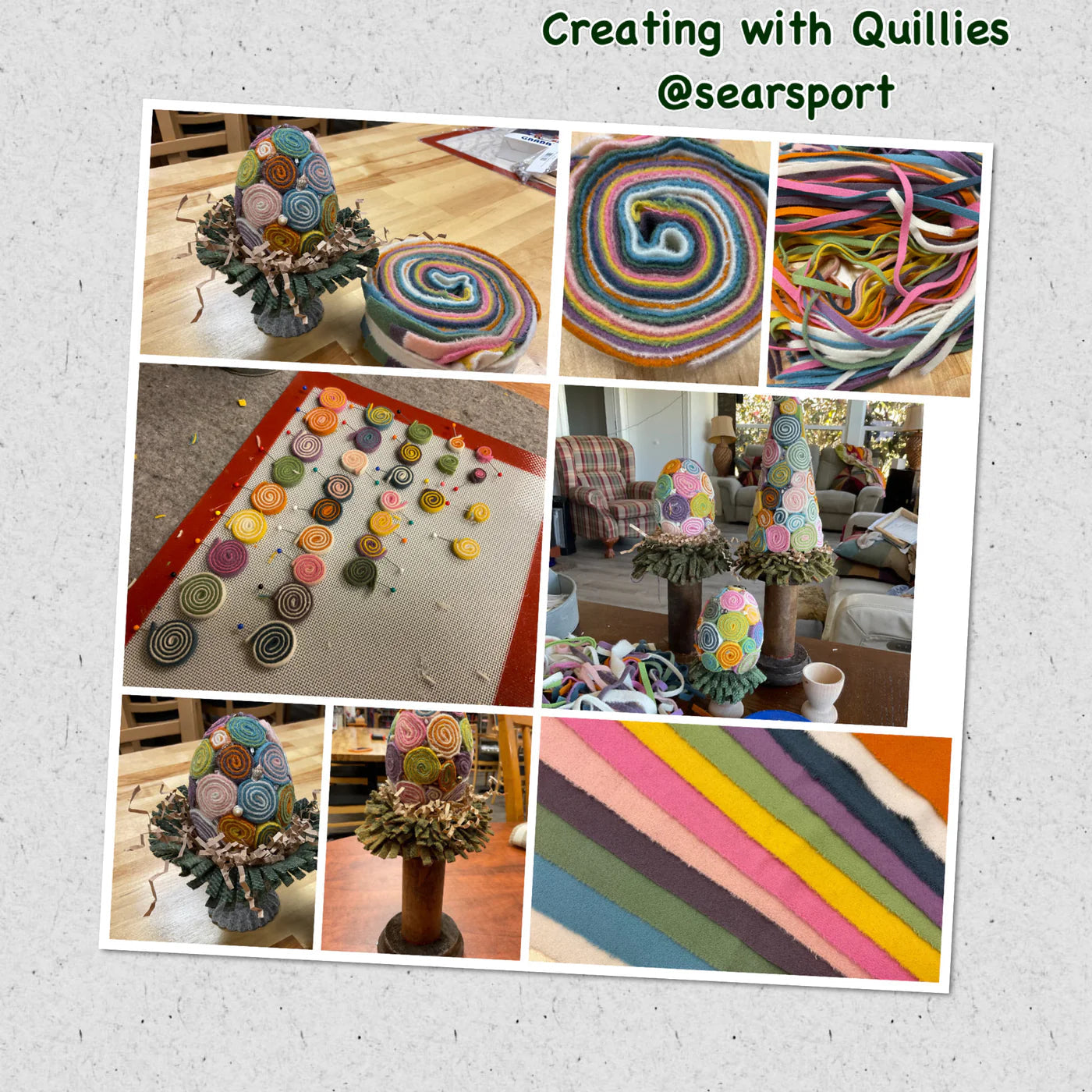 We have 4 projects you can choose from in this fun class. Class cost includes all your pre cut wool, use of our glue guns, scissors and everything needed to make your own Quillie project. You will leave class with a completed piece.