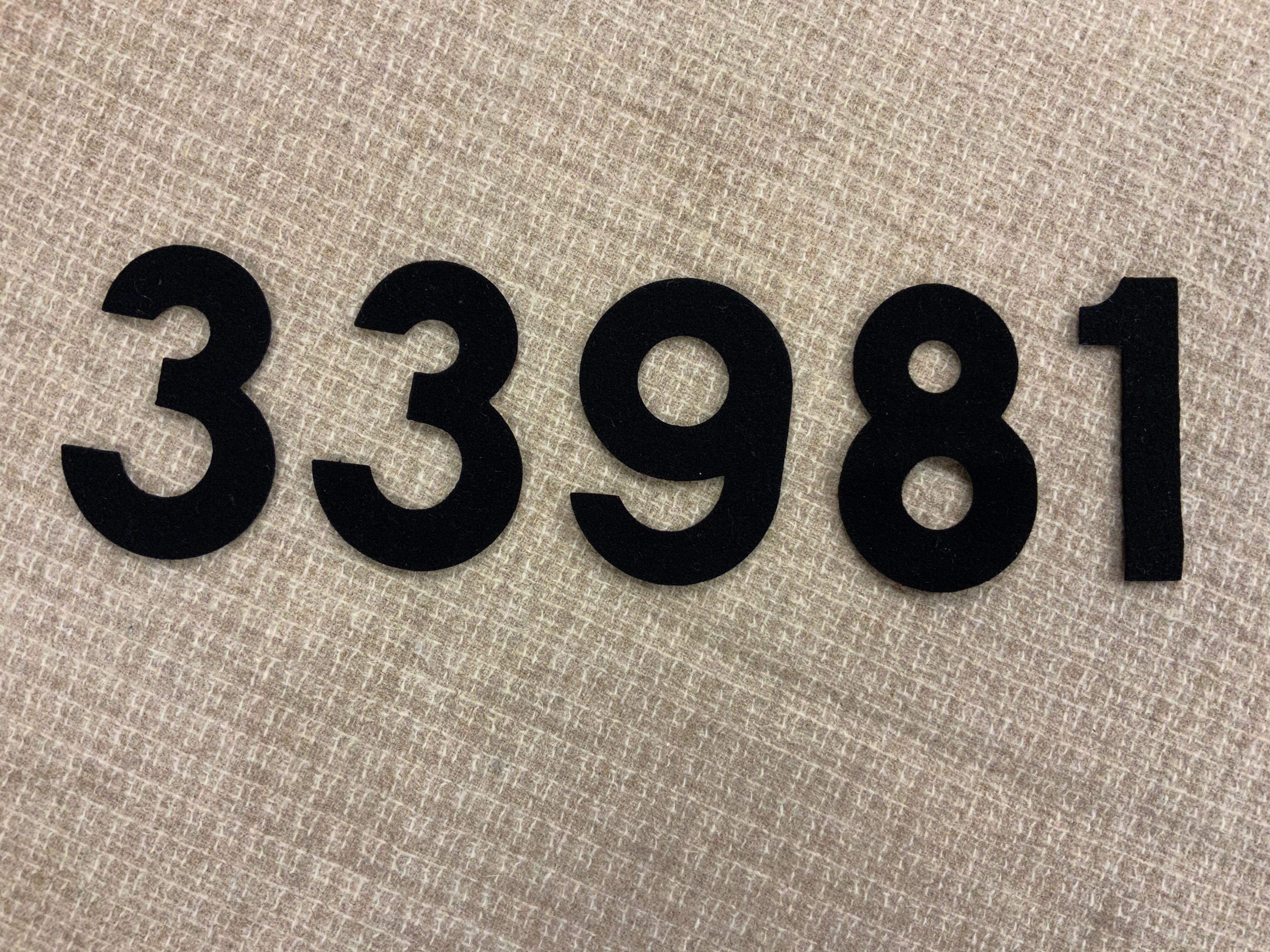 4 inch numbers all pre cut in heavy black wool to appliqué your own zip code pillows selling right now! Add them to anything for a fun gift for someone moving, going away to collage or getting married or a new home. Or to remember a childhood home or trip. You can add a ball of valdani black for stitching if you need it. At check out tell us the 5 numbers you need cut for you.
