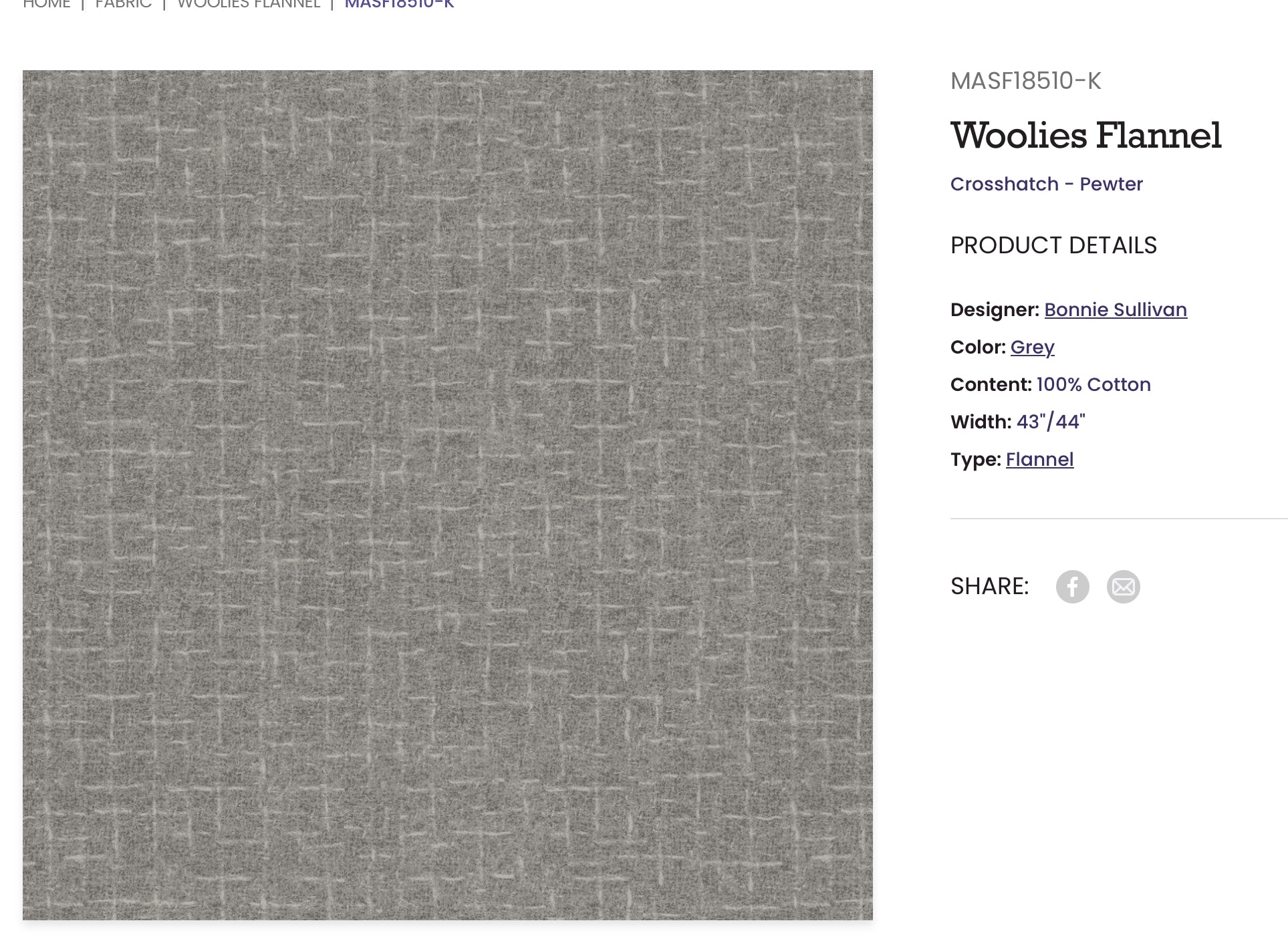Woolies Flannel by Bonnie Sullivan is the 100% cotton flannel fabric collection that quilters turn to again and again. Printed on subtly shaded grounds and in a wide array of colors, the Woolies Flannel fabrics are designed to complement Bonnie Sullivan’s fabric collections and quilt projects. Mix and match the rustic, wool-inspired patterns and colors for cozy flannel projects that will warm your hearts and your toes.