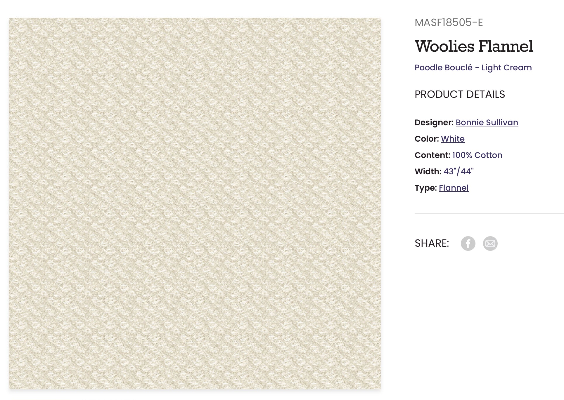 Woolies Flannel by Bonnie Sullivan is the 100% cotton flannel fabric collection that quilters turn to again and again. Printed on subtly shaded grounds and in a wide array of colors, the Woolies Flannel fabrics are designed to complement Bonnie Sullivan’s fabric collections and quilt projects. Mix and match the rustic, wool-inspired patterns and colors for cozy flannel projects that will warm your hearts and your toes.