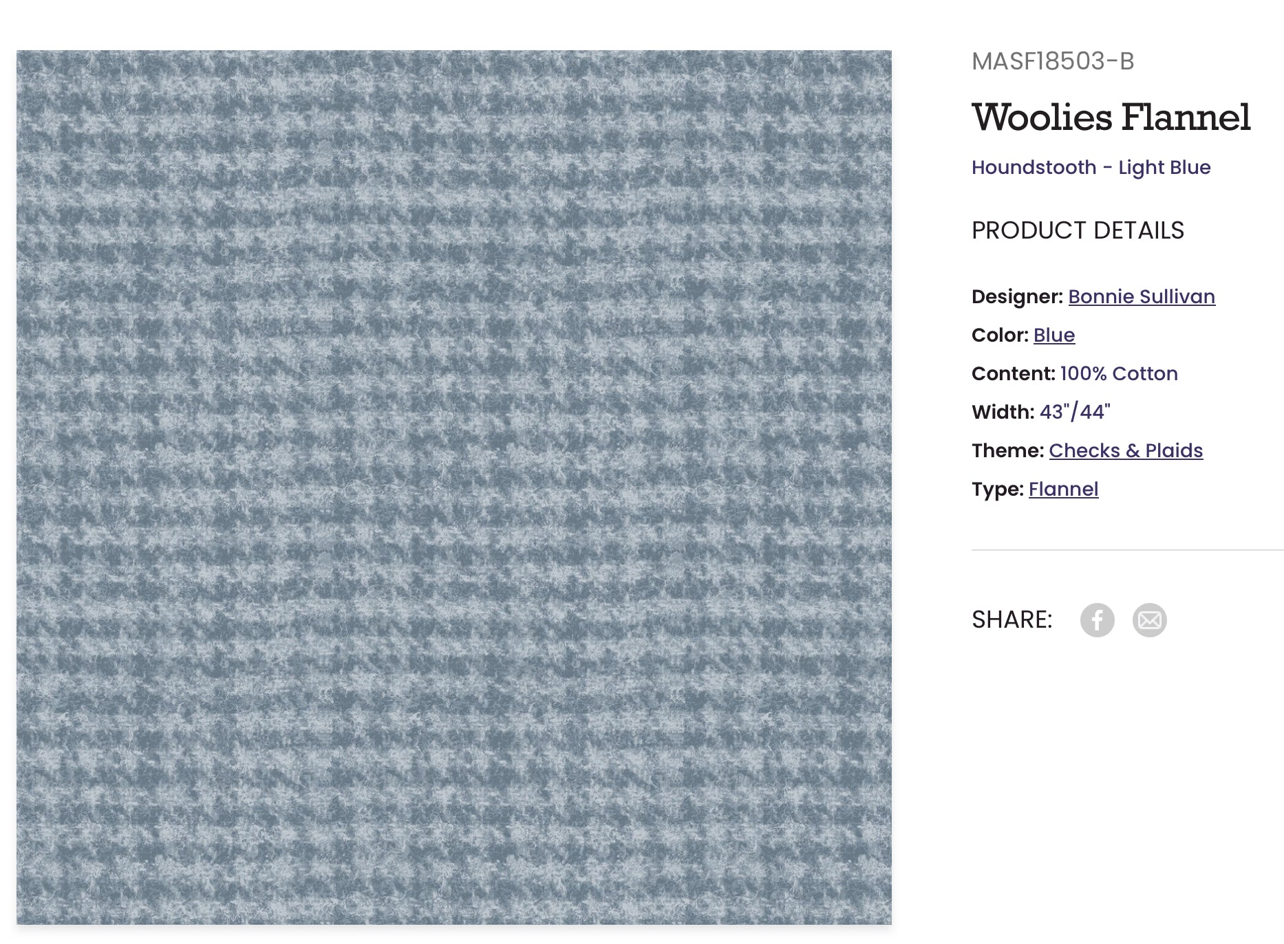 Woolies Flannel by Bonnie Sullivan is the 100% cotton flannel fabric collection that quilters turn to again and again. Printed on subtly shaded grounds and in a wide array of colors, the Woolies Flannel fabrics are designed to complement Bonnie Sullivan’s fabric collections and quilt projects. Mix and match the rustic, wool-inspired patterns and colors for cozy flannel projects that will warm your hearts and your toes.