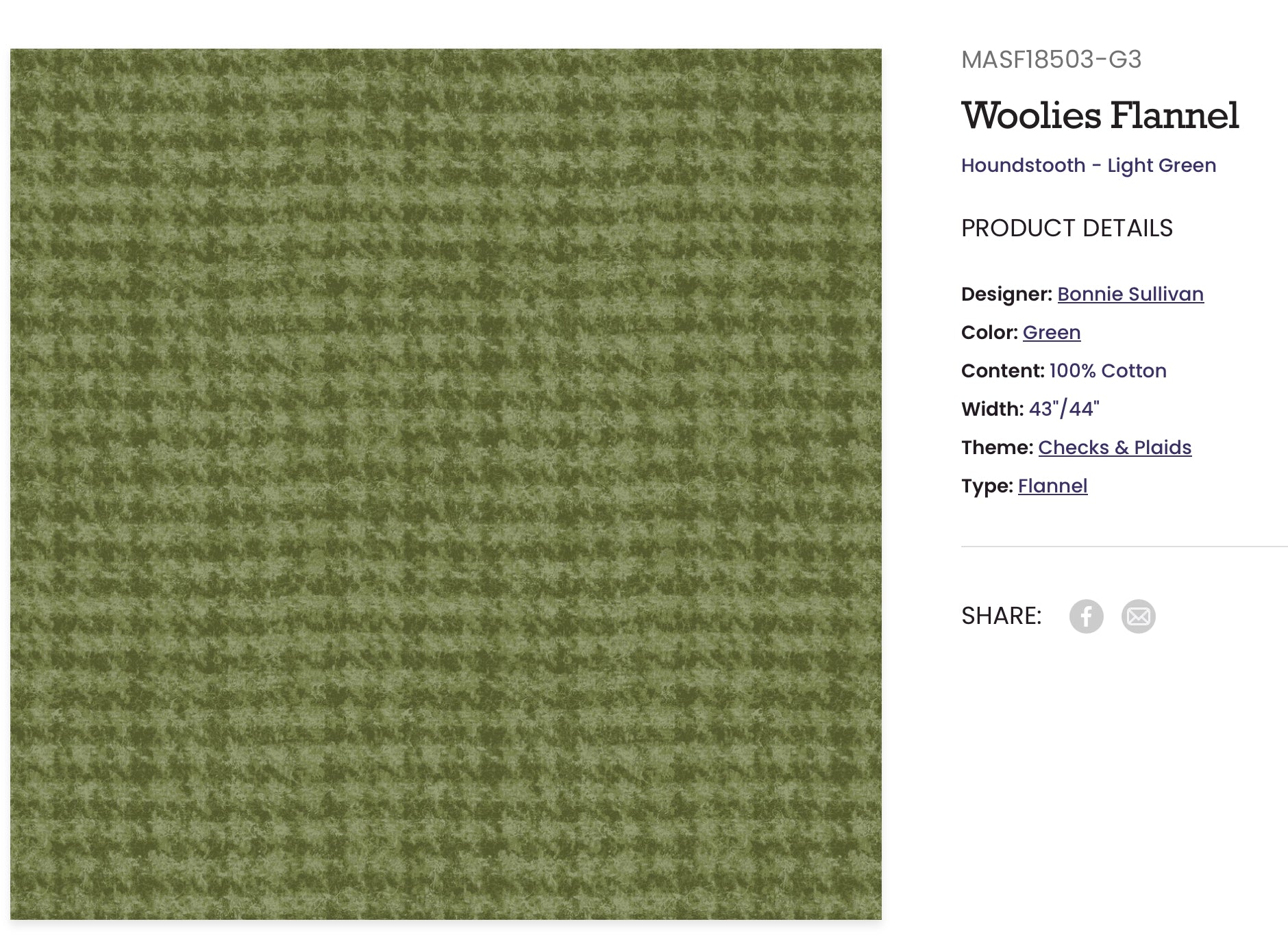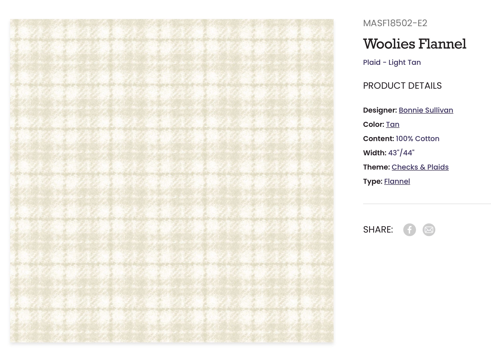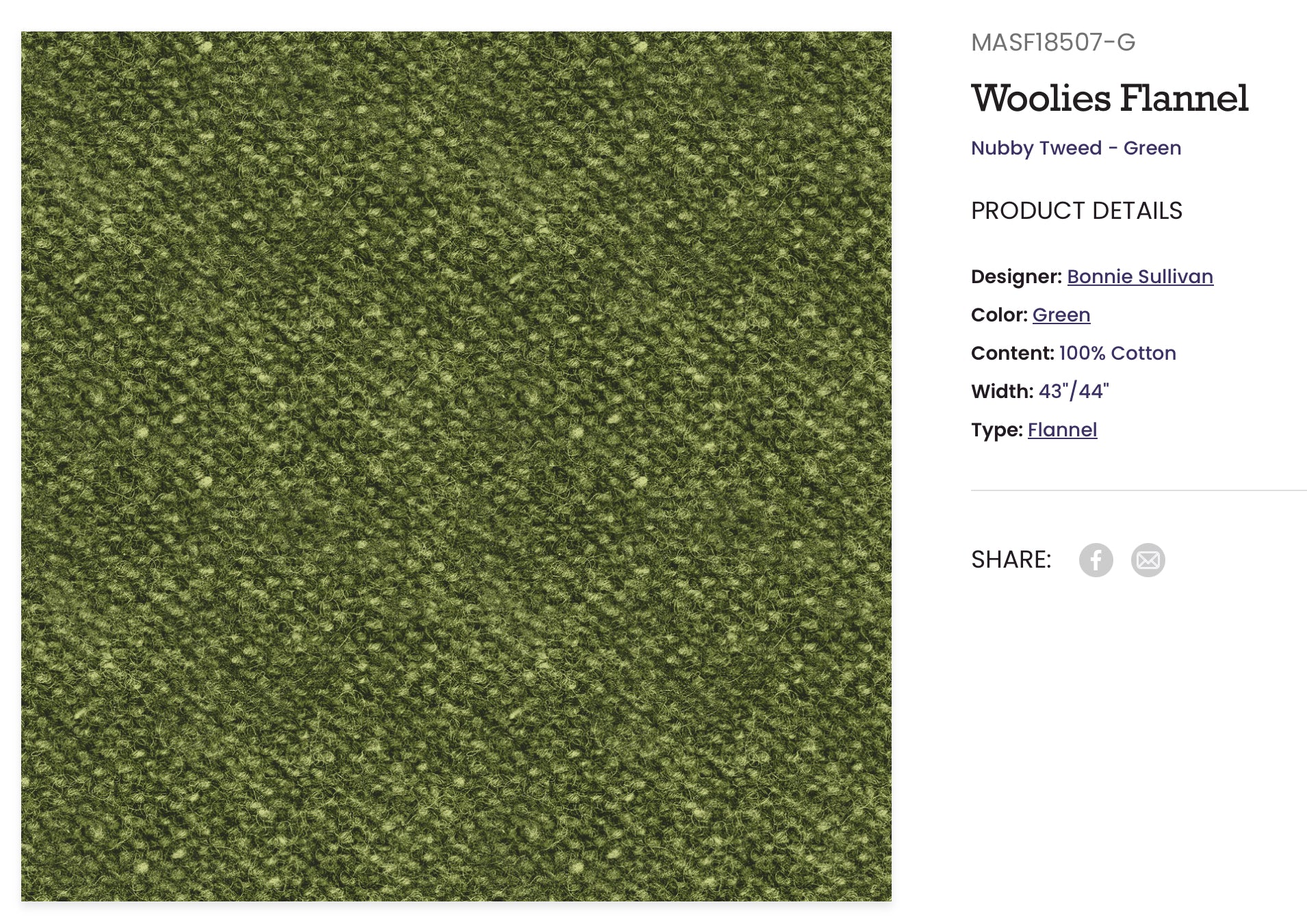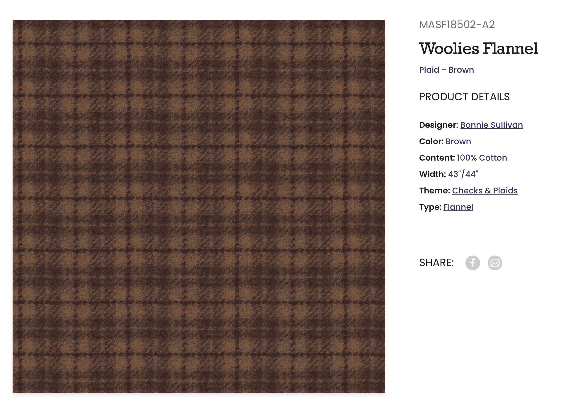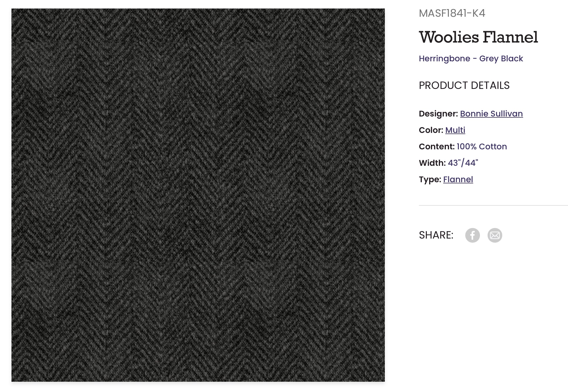 Woolies Flannel by Bonnie Sullivan is the 100% cotton flannel fabric collection that quilters turn to again and again. Printed on subtly shaded grounds and in a wide array of colors, the Woolies Flannel fabrics are designed to complement Bonnie Sullivan’s fabric collections and quilt projects. Mix and match the rustic, wool-inspired patterns and colors for cozy flannel projects that will warm your hearts and your toes.