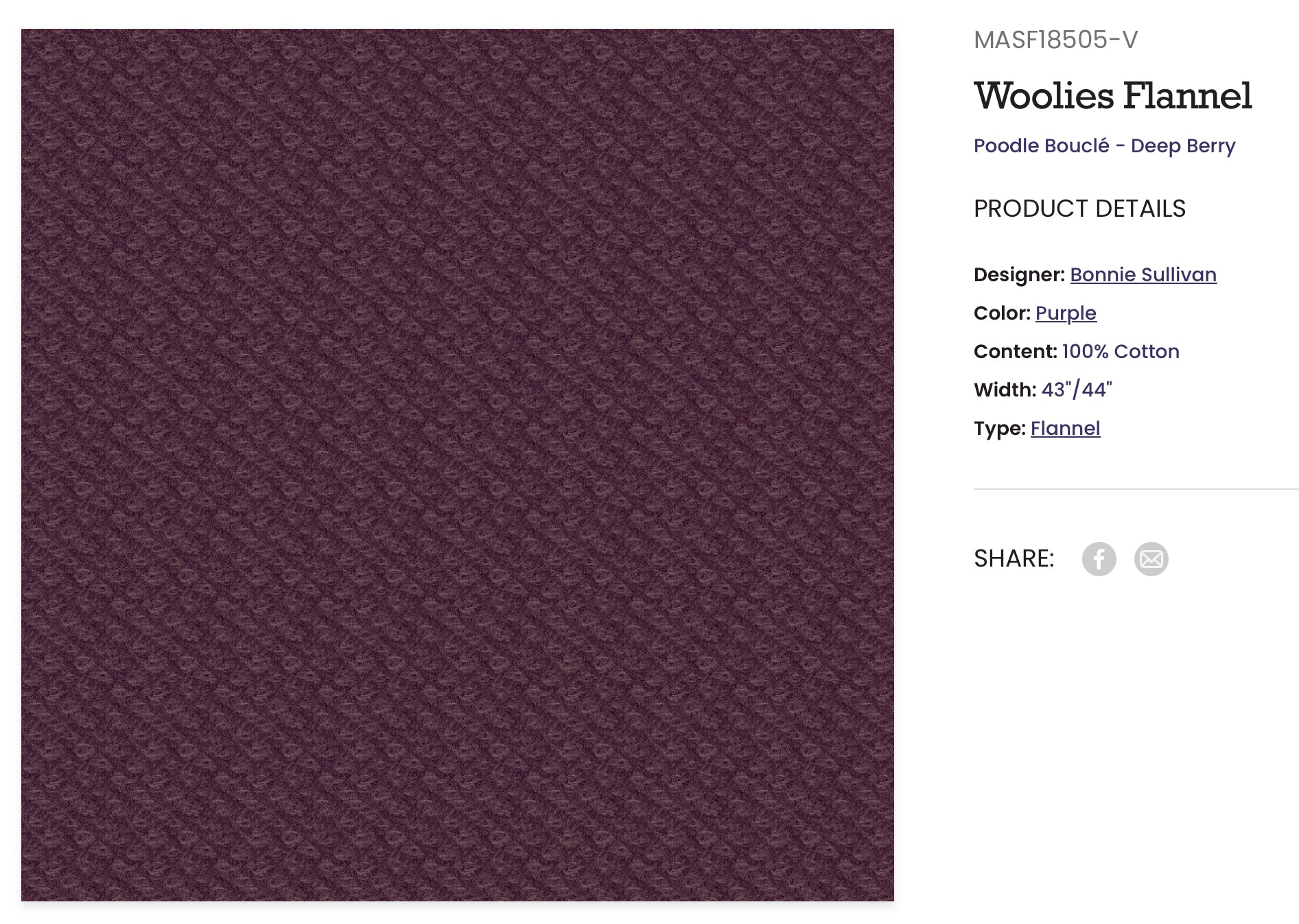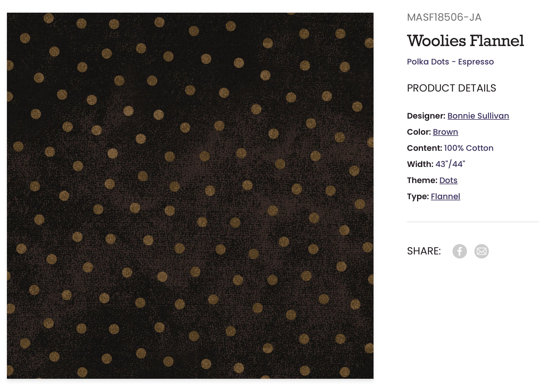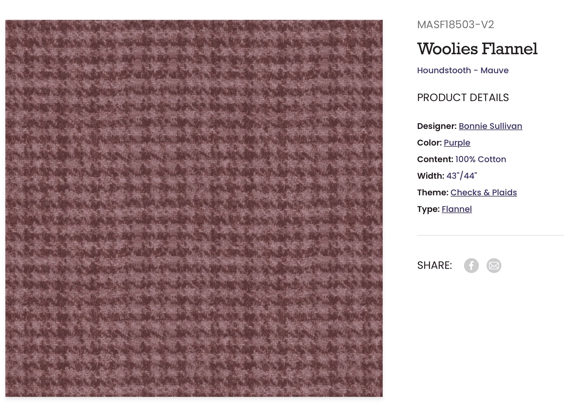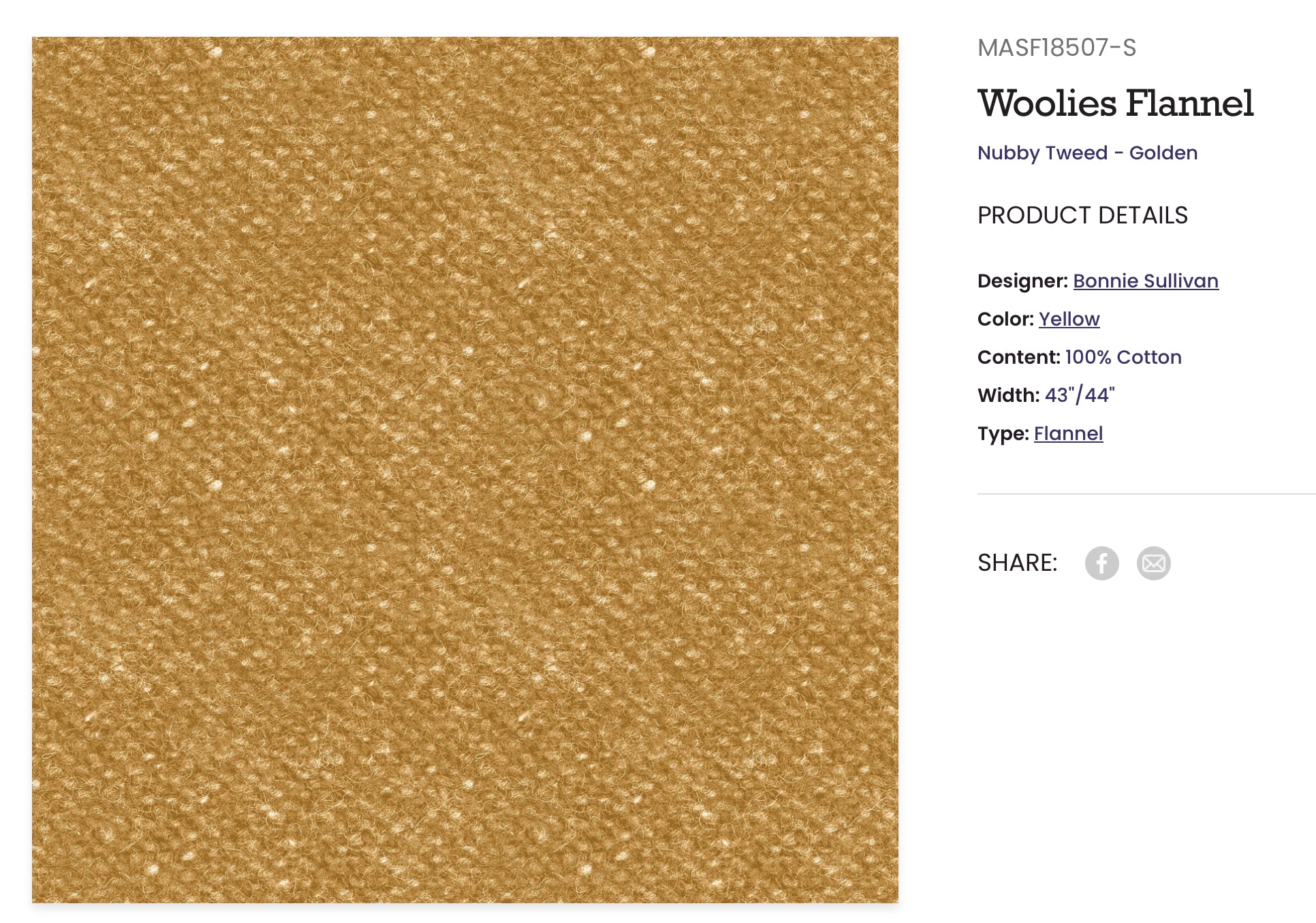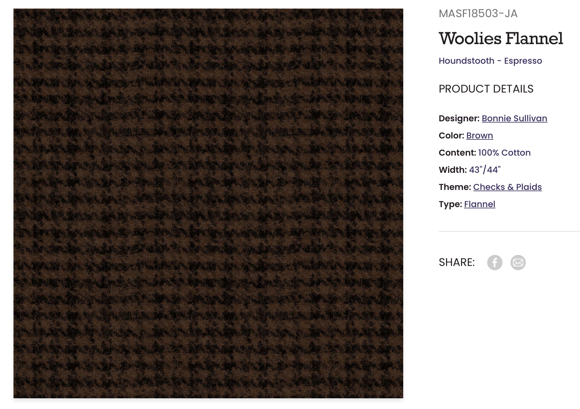 Woolies Flannel by Bonnie Sullivan is the 100% cotton flannel fabric collection that quilters turn to again and again. Printed on subtly shaded grounds and in a wide array of colors, the Woolies Flannel fabrics are designed to complement Bonnie Sullivan’s fabric collections and quilt projects. Mix and match the rustic, wool-inspired patterns and colors for cozy flannel projects that will warm your hearts and your toes.
