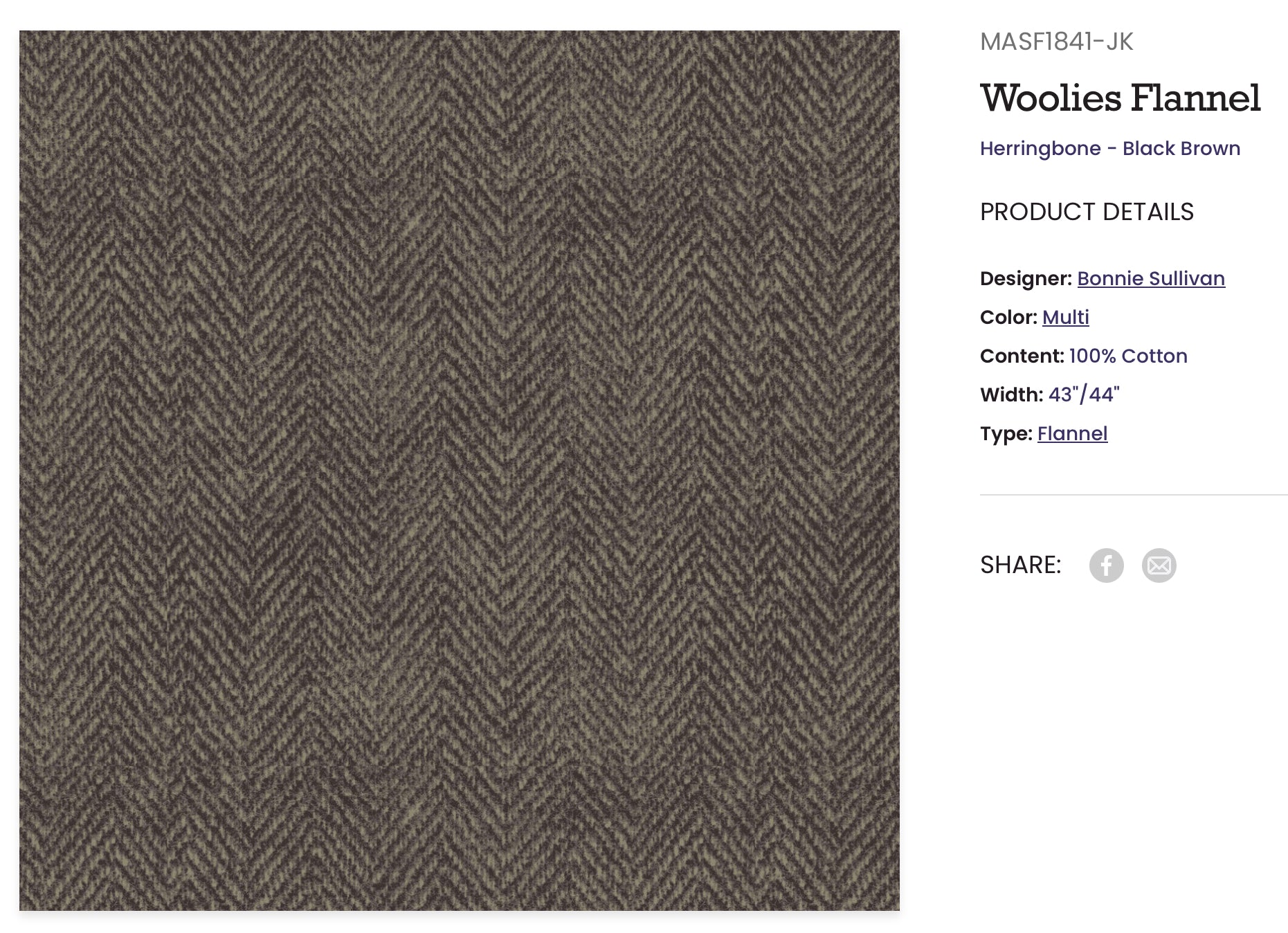 Woolies Flannel by Bonnie Sullivan is the 100% cotton flannel fabric collection that quilters turn to again and again. Printed on subtly shaded grounds and in a wide array of colors, the Woolies Flannel fabrics are designed to complement Bonnie Sullivan’s fabric collections and quilt projects. Mix and match the rustic, wool-inspired patterns and colors for cozy flannel projects that will warm your hearts and your toes.