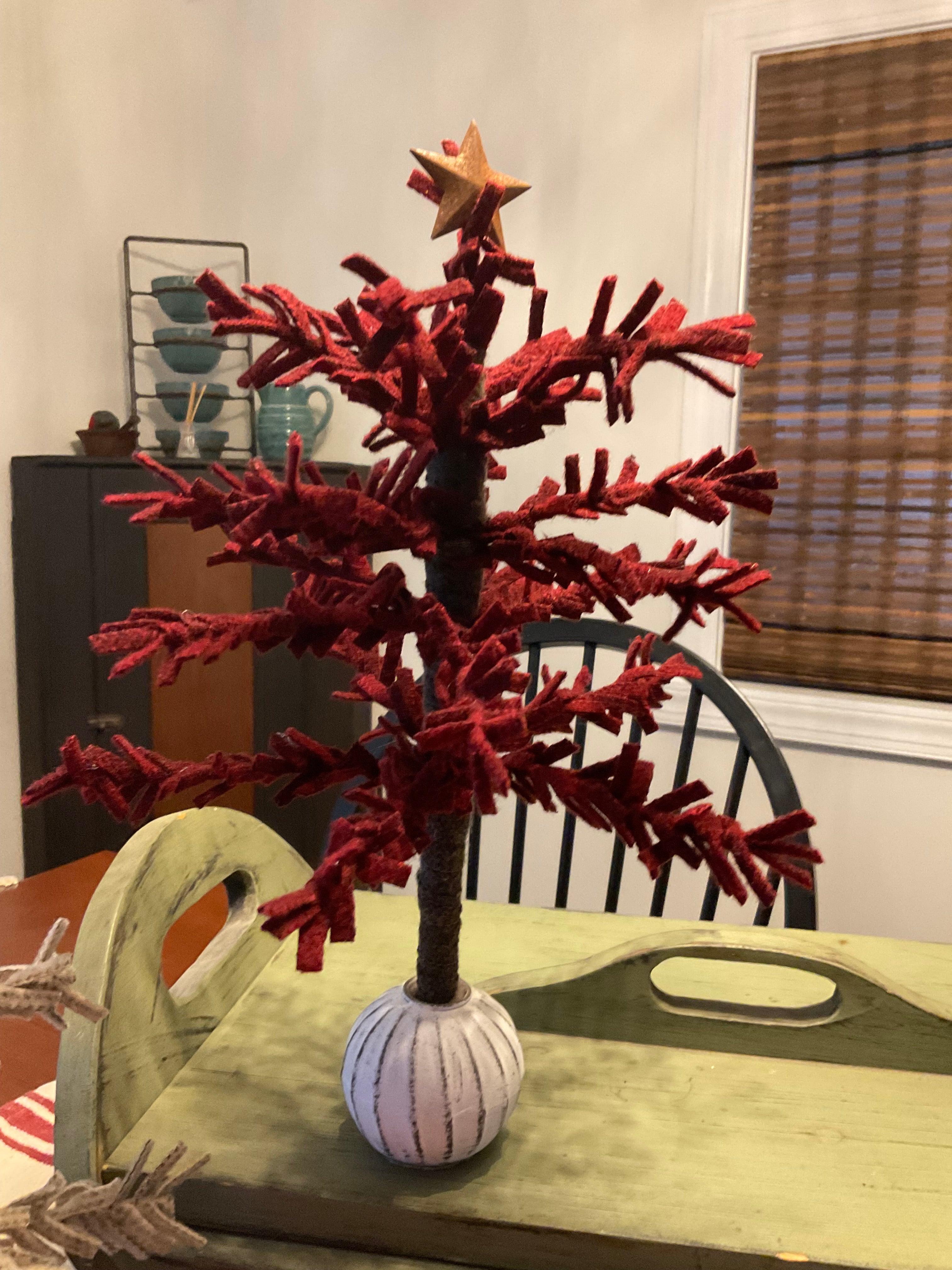 Grab your glue gun, wire cutters and let your creative juices flow! When your kit arrives you can just start twisting up a storm! No trimming or cutting or snipping to make your wooly feather trees! We have put together these sweet kits to create your own twisted short bristle tree. The kit includes the cut wool in your choice of colors, the tin base in antique white, the wires, dowel, tape, instructions, 6 inch ruler, brown trunk wrap wool and a star for the top of your tree! So pick your wool color and we will pre cut it all for you and include everything you need, except wire cutters scissors and glue!
