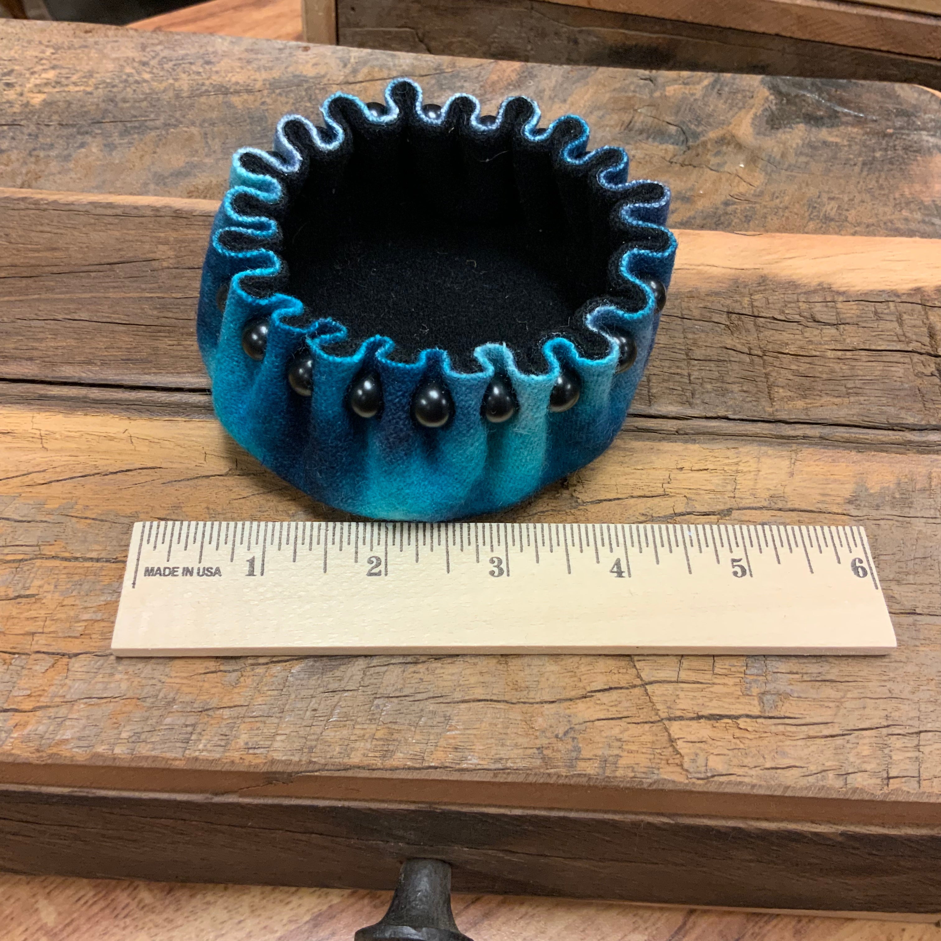 This cool little pot set is easy to whip up in an afternoon. I made mine for wool snippets and thread ends as I'm working but now i have one at home to put my rings in and one of our knitters is making one for the row markers! What will you put in yours? The finished small pot measures 3.5X1.5 and the large pot measures 4 X2