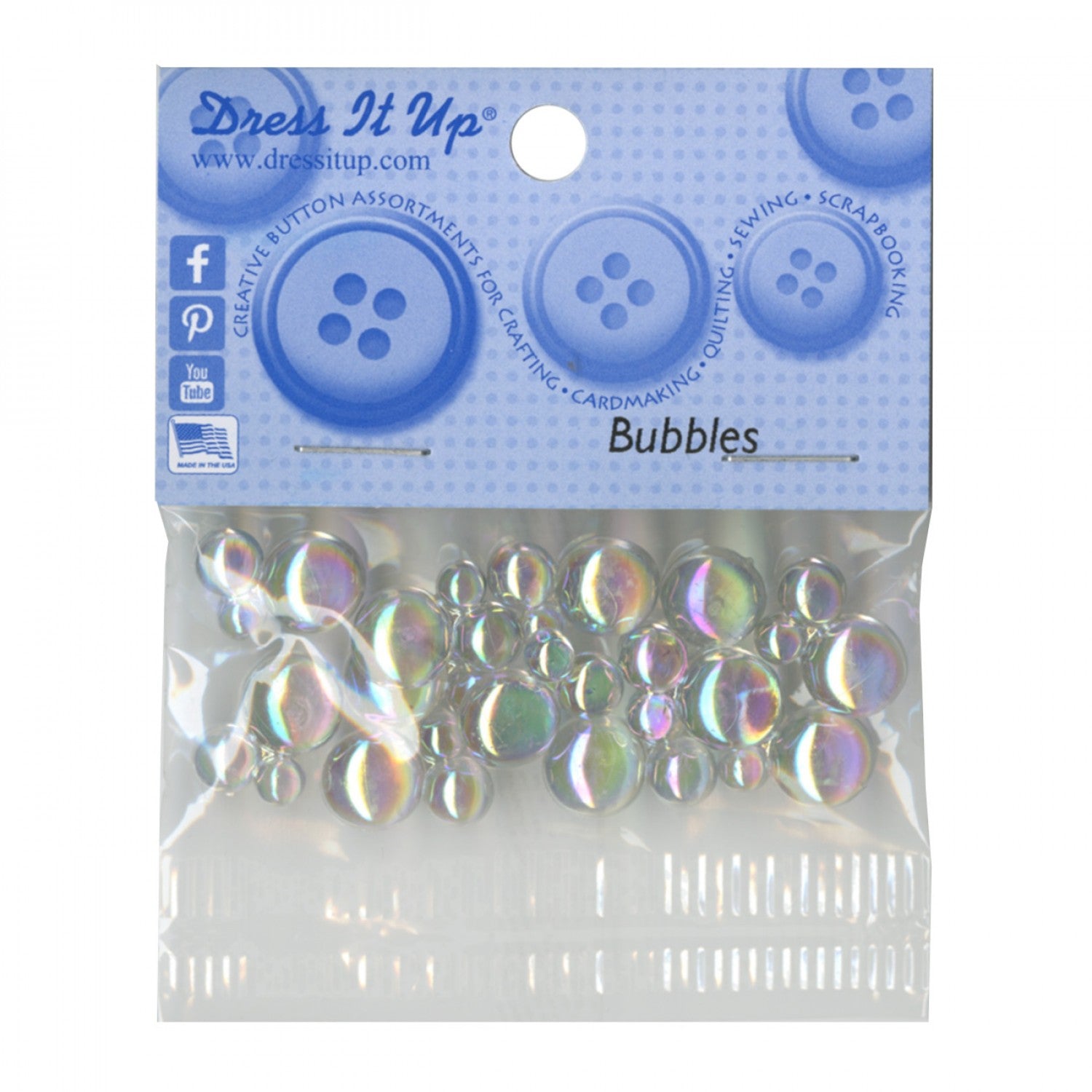 Light and playful, these bubble buttons are light weight and perfect for decorating aquatic themed children's crafts. Each blend of embellishments features ten bubbles that can be added to tooth brush holders, baby shower decorations, soap holders, mirrors, party favors, or more. Largest embellishment measures approximately 17mm. 10 pieces. Flat-back buttons.