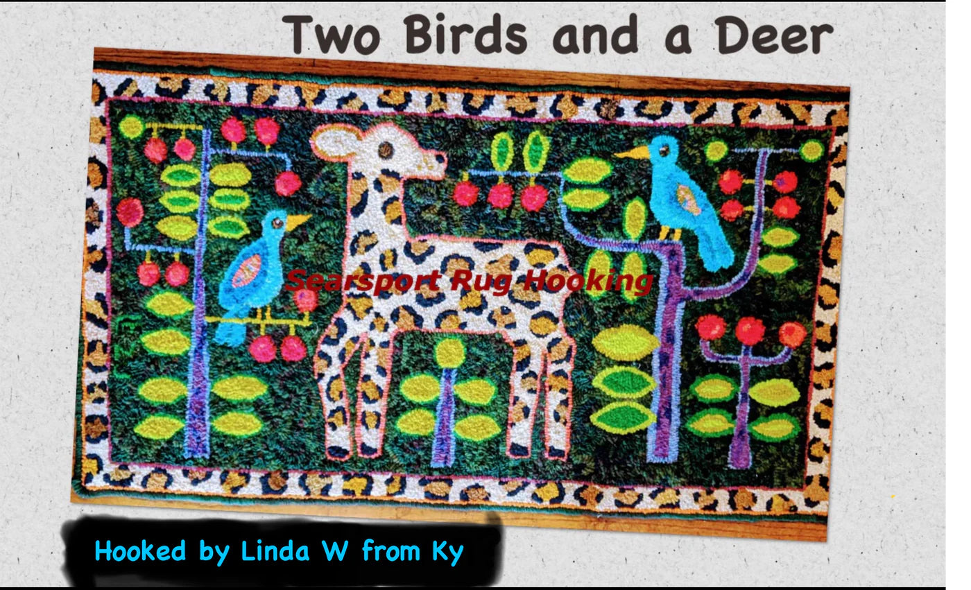 If you love our pattern “2 birds and a Deer” but it’s overwhelming at 27x50 How about 1 Bird and a Deer? It’s only 24x30! Chris re drew the pattern to be smaller for those whole don’t want or need a big rug. This will make a wonderful wall hanging too! We love all versions of this great rug. The hooked samples we are showing is for the larger version and we are sharing for color planning ideas. If you have hooked any of our rugs and we don’t have your picture please send us a copy to share! We will send you a gift card for sharing it!