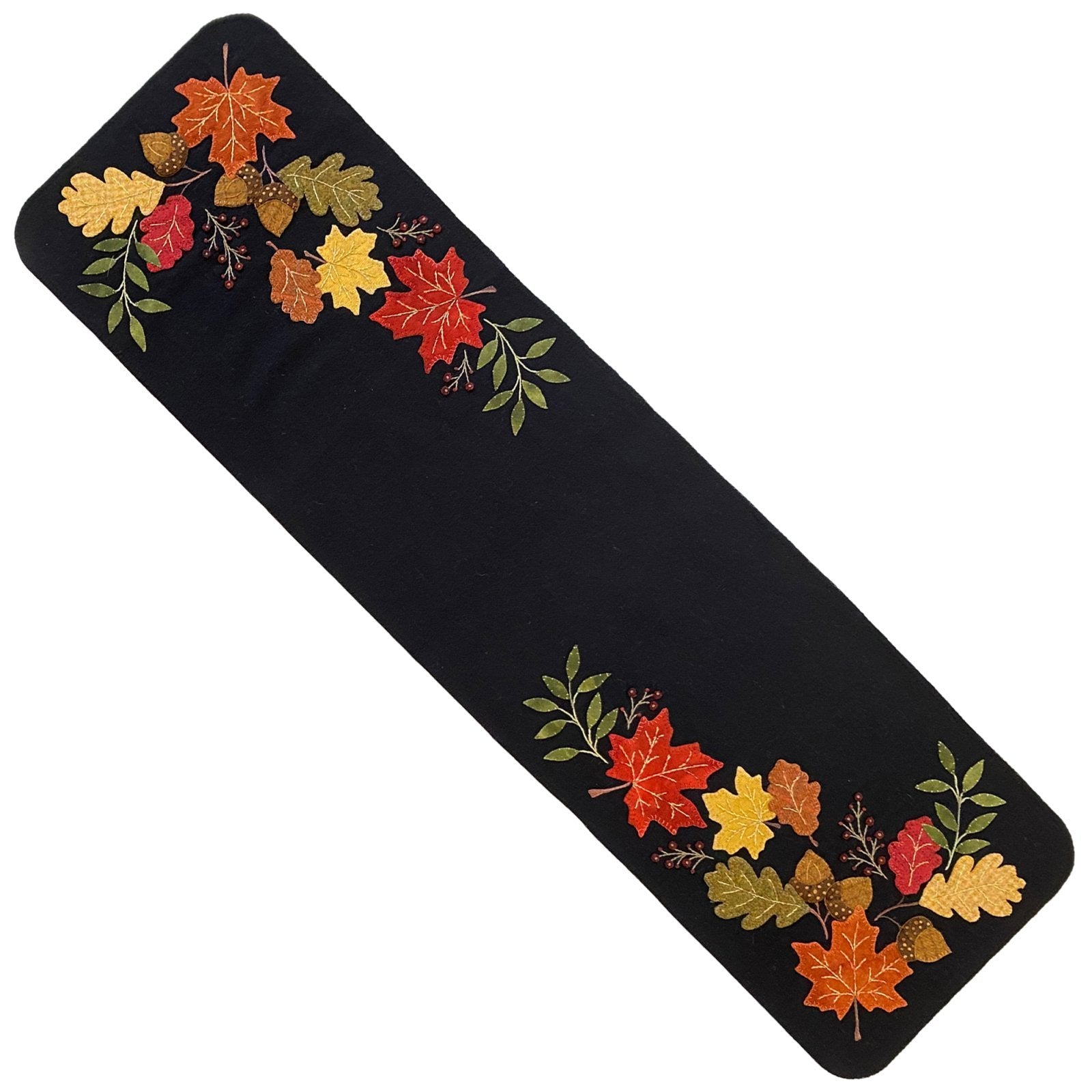 Finished size is 12x41. Check out our pre cut bases in many colors to use on this great design! We have both scalloped and rounded ends and the pieces fit perfectly and save you a ton of work! Add the fun Crazy Quilt Stitcher pocket guide to play with fun new stitches!