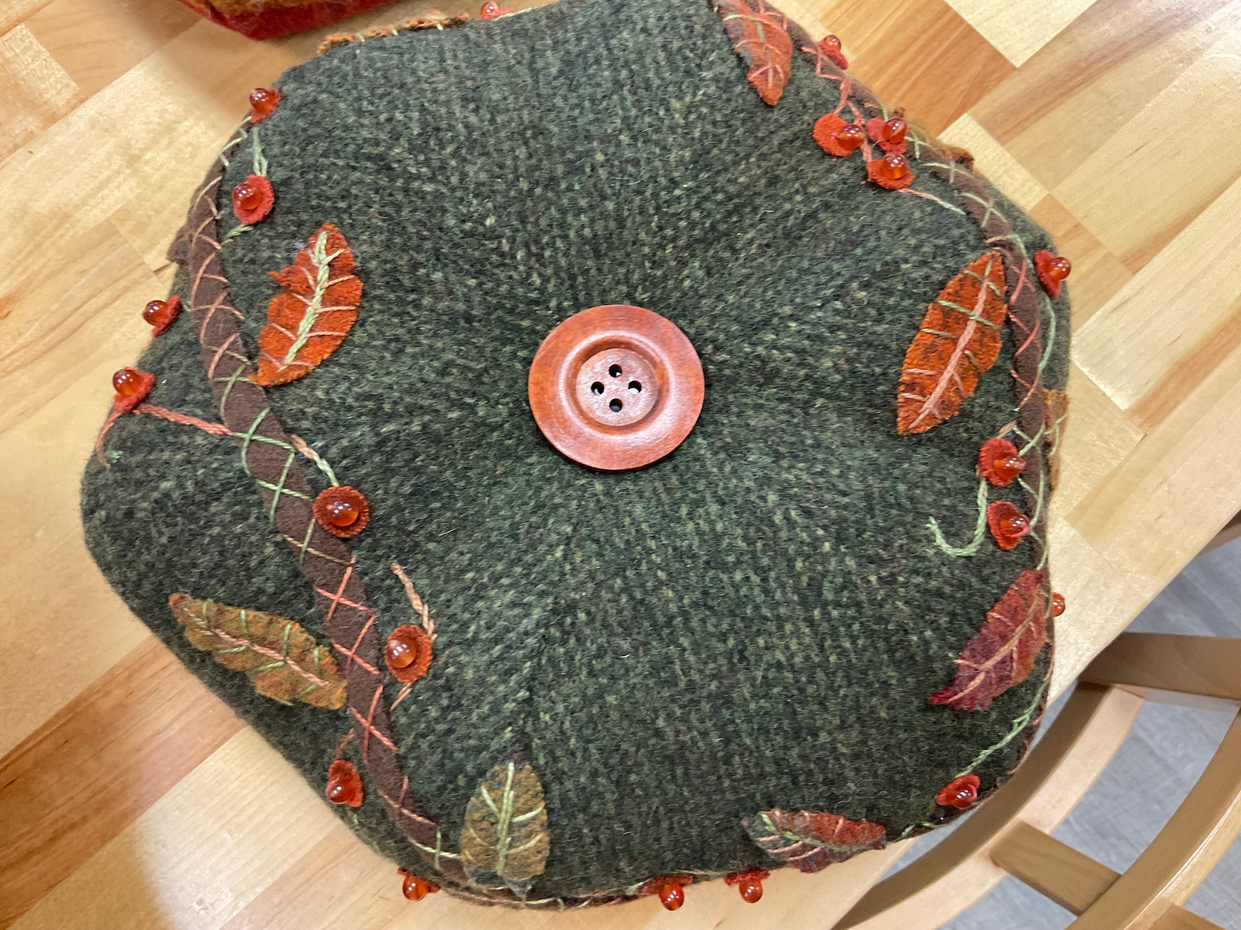 The three larger big buttons are all 2.5 inches and what we used in our medium and large pumpkins. The medium plain button is not quite 1.5 inches and perfect for the small pumpkin projects.