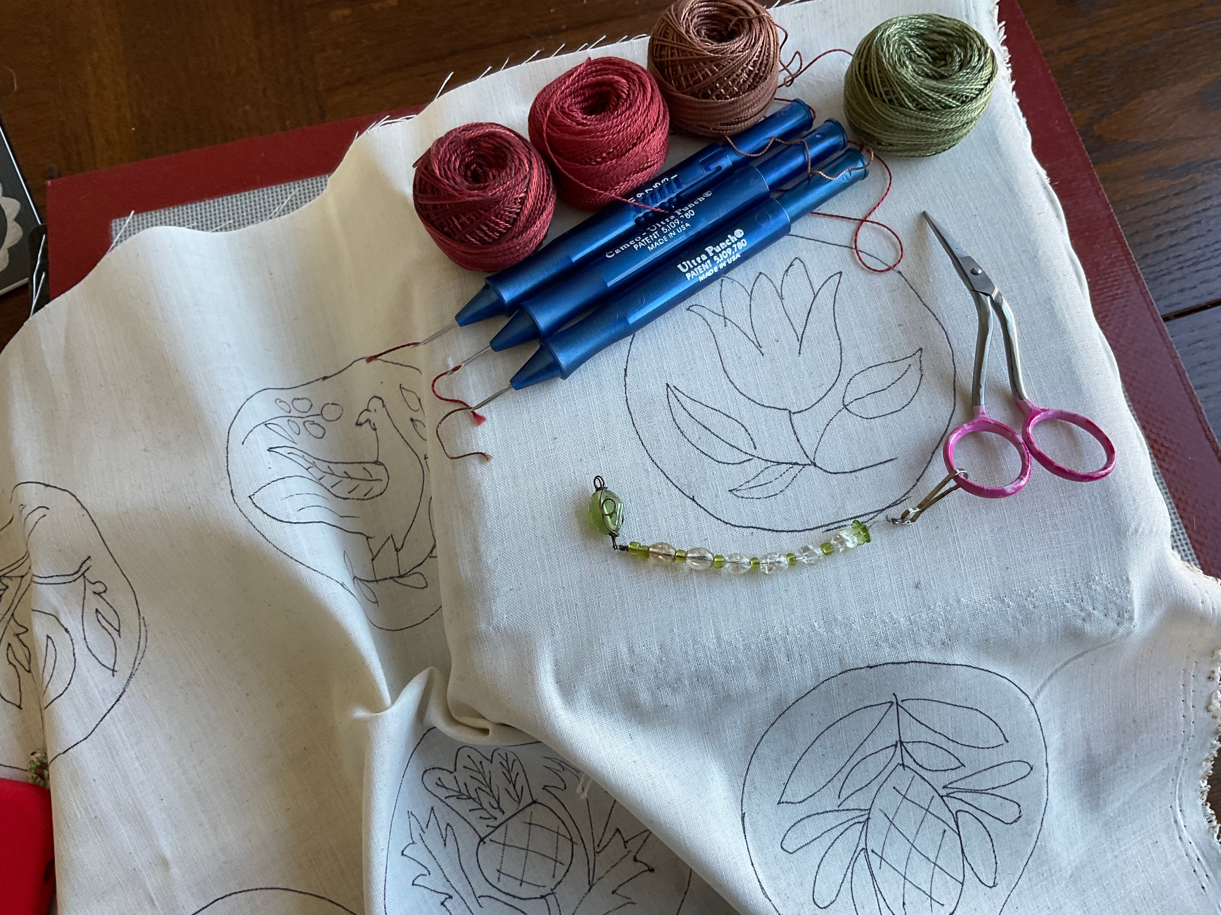 We have posted some pictures showing the designs appliquéd, Oxford Punched, mini punched and mini punched on wool!