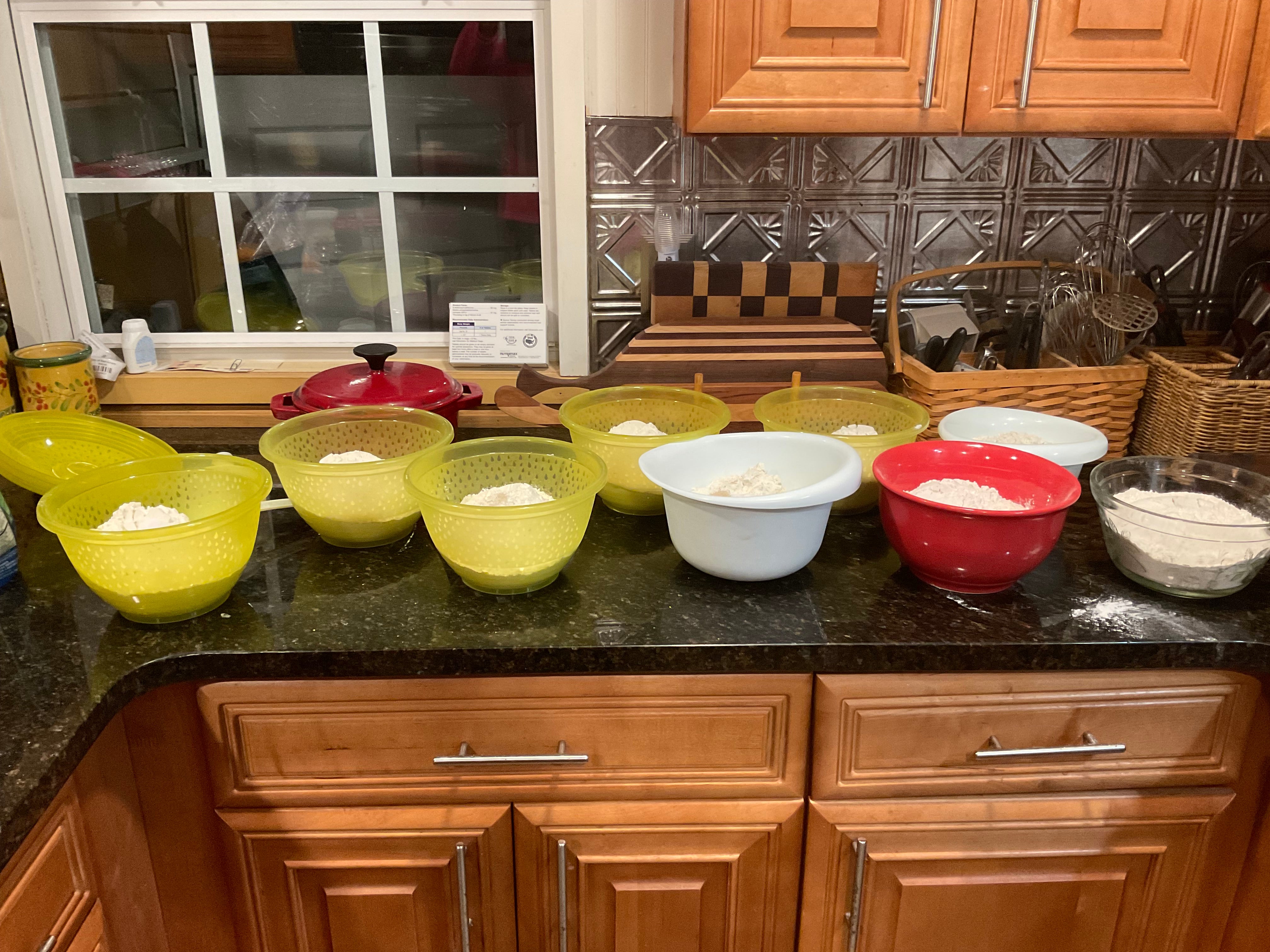 Gently push all the dough to the bottom of the bag or cover your bowl and let sit on the counter over night. It is best if it has 8-18 hours. We do before bed or before we leave for work.
