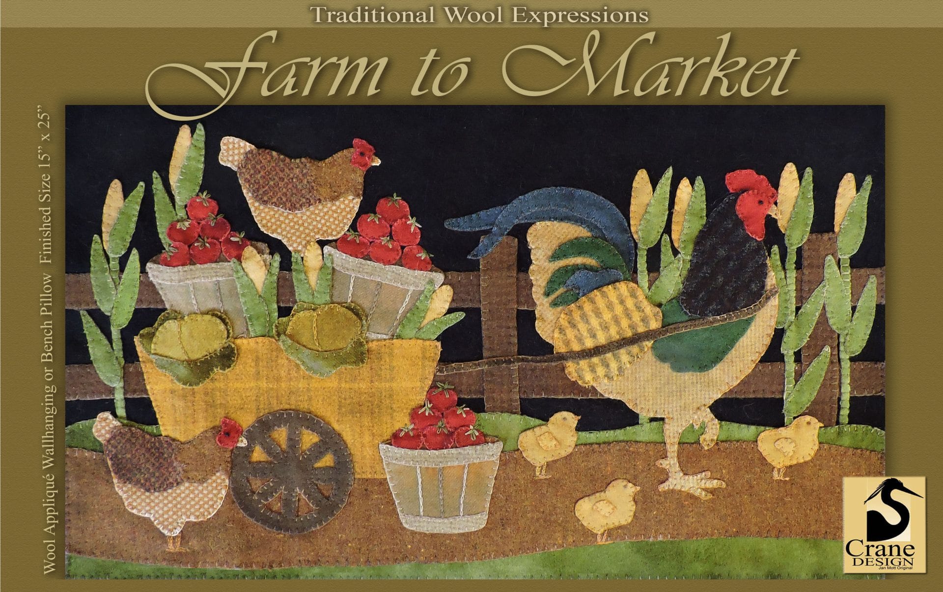 Farm to Market is a whimsical piece to evoke memories of times going to a farmers market, with lots of fresh produce and enjoying the sights of our barnyard friends... a fun family outing for all.