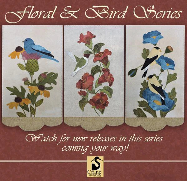 This new applique piece may be used as a wall-hanging or even as a framed piece. The piece includes some easy embroidery stitch to make the piece just pop..we hope you enjoy. This piece was created with rich hand dyed and textured wools that radiates a warm and rich feeling. Finished size is 8.5x15.5
