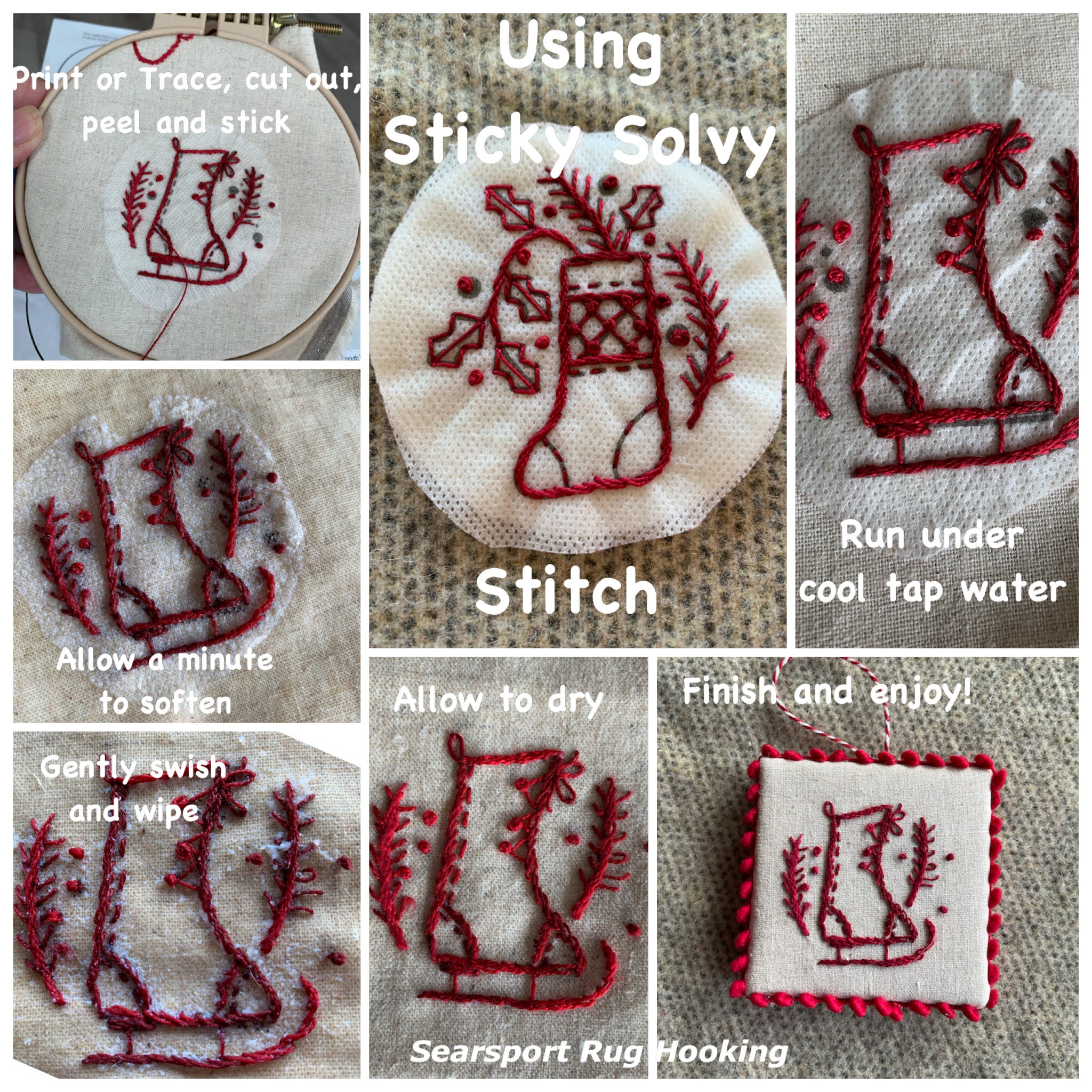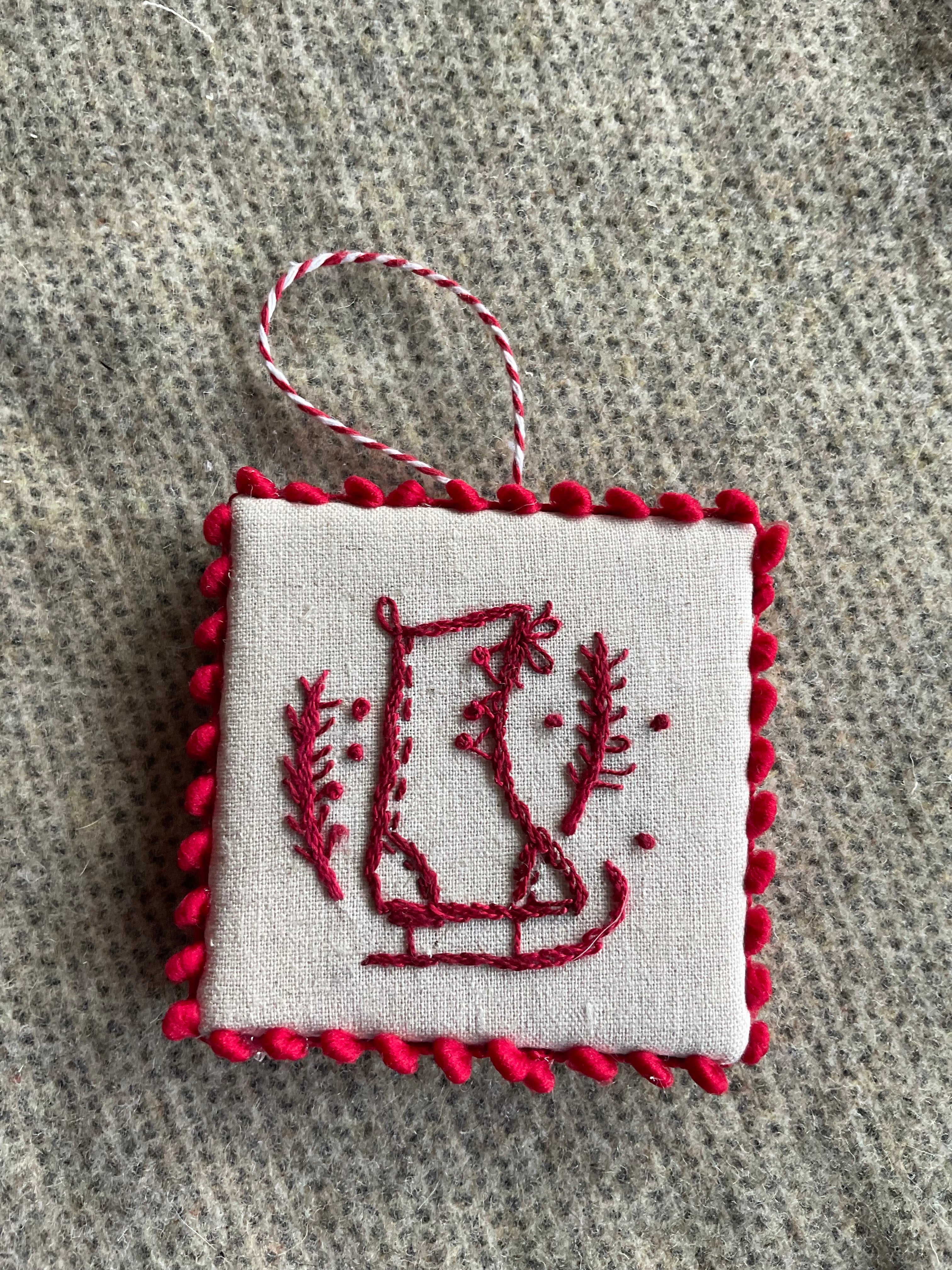 This patterns includes the directions for 14 cheery 3" long Christmas ornaments to hand embroider and finish. Complete finishing directions are included with the pattern.