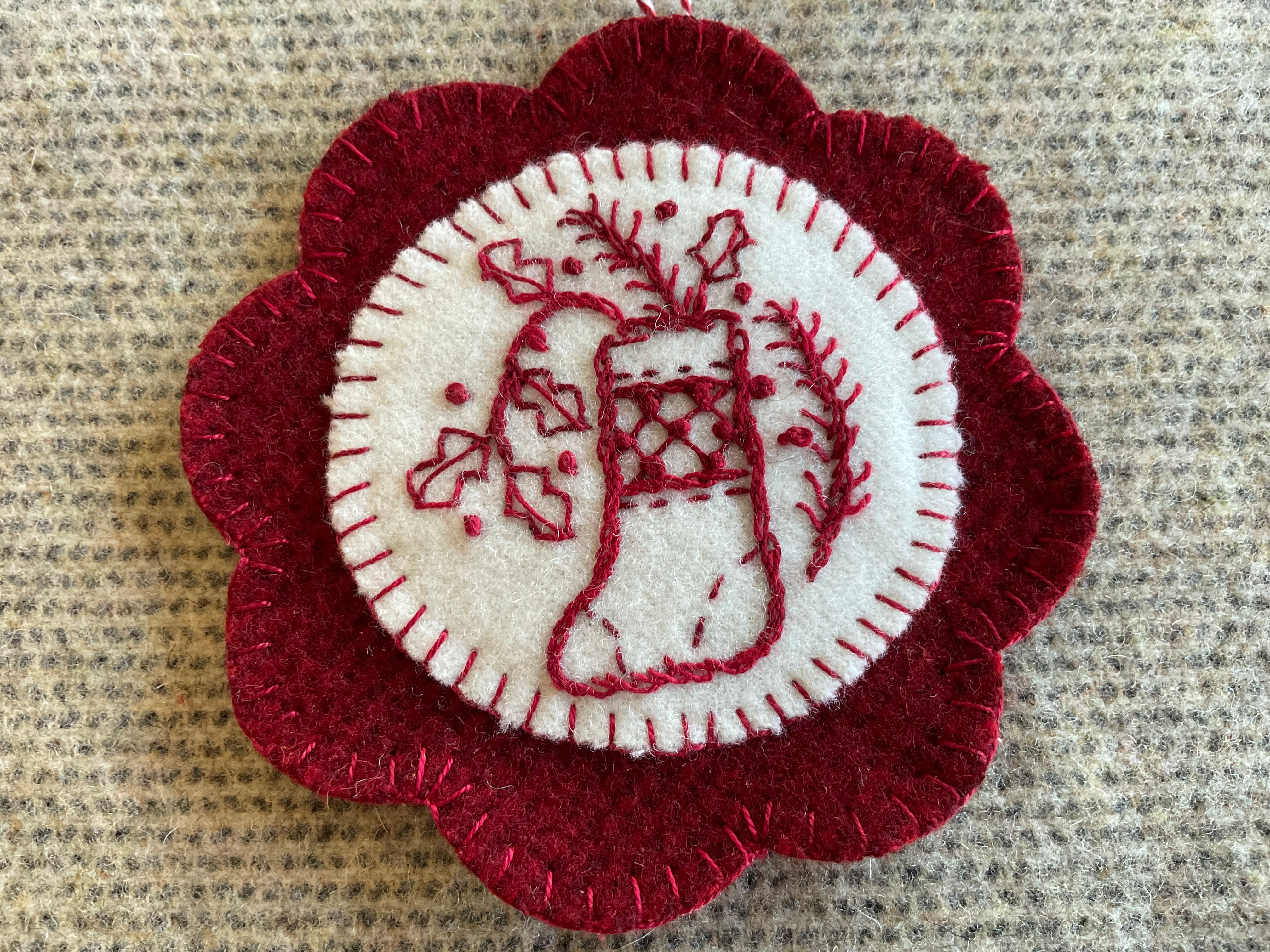 Or how about stitching in white on a beautiful pre cut cranberry scalloped circle!