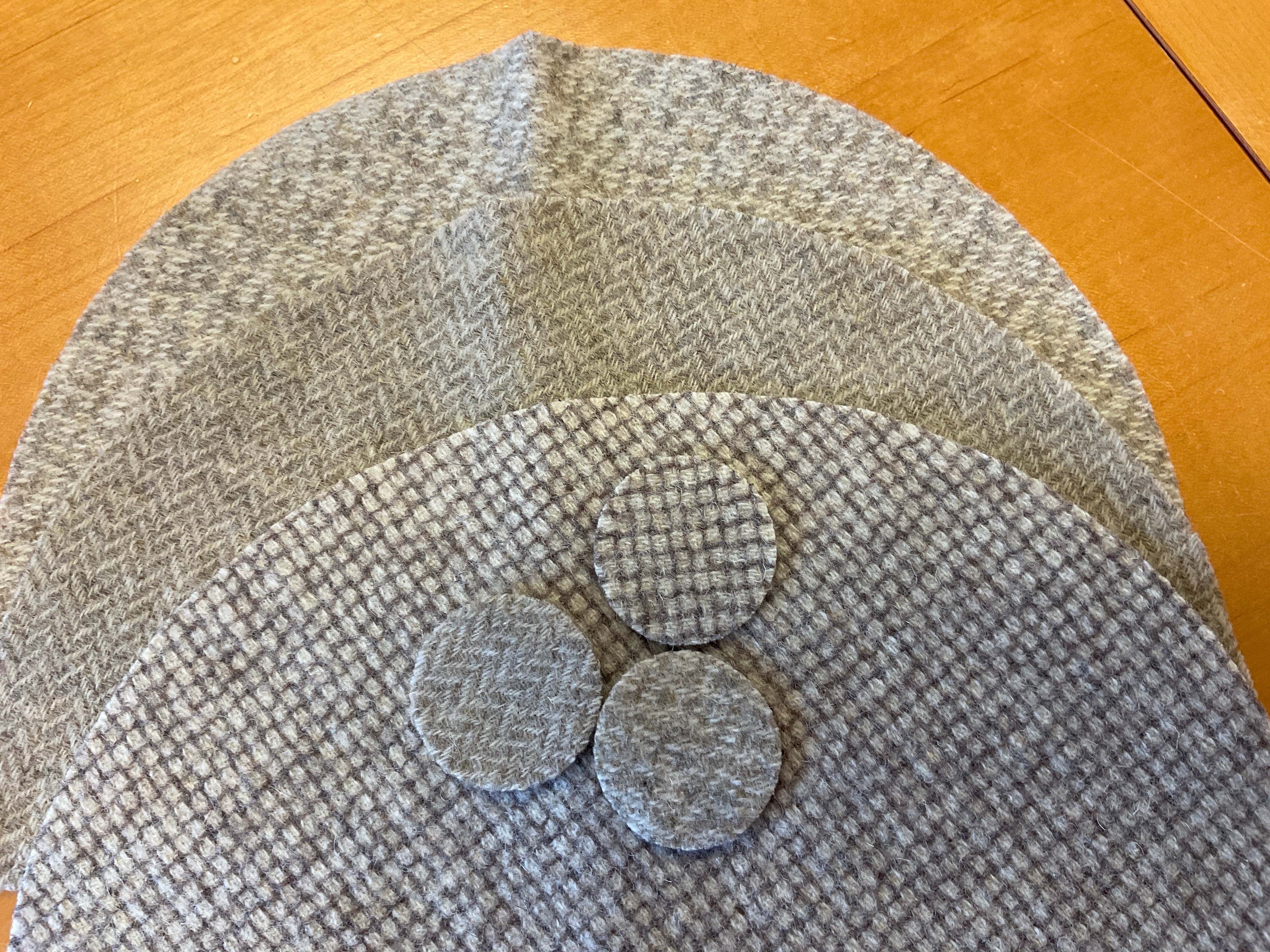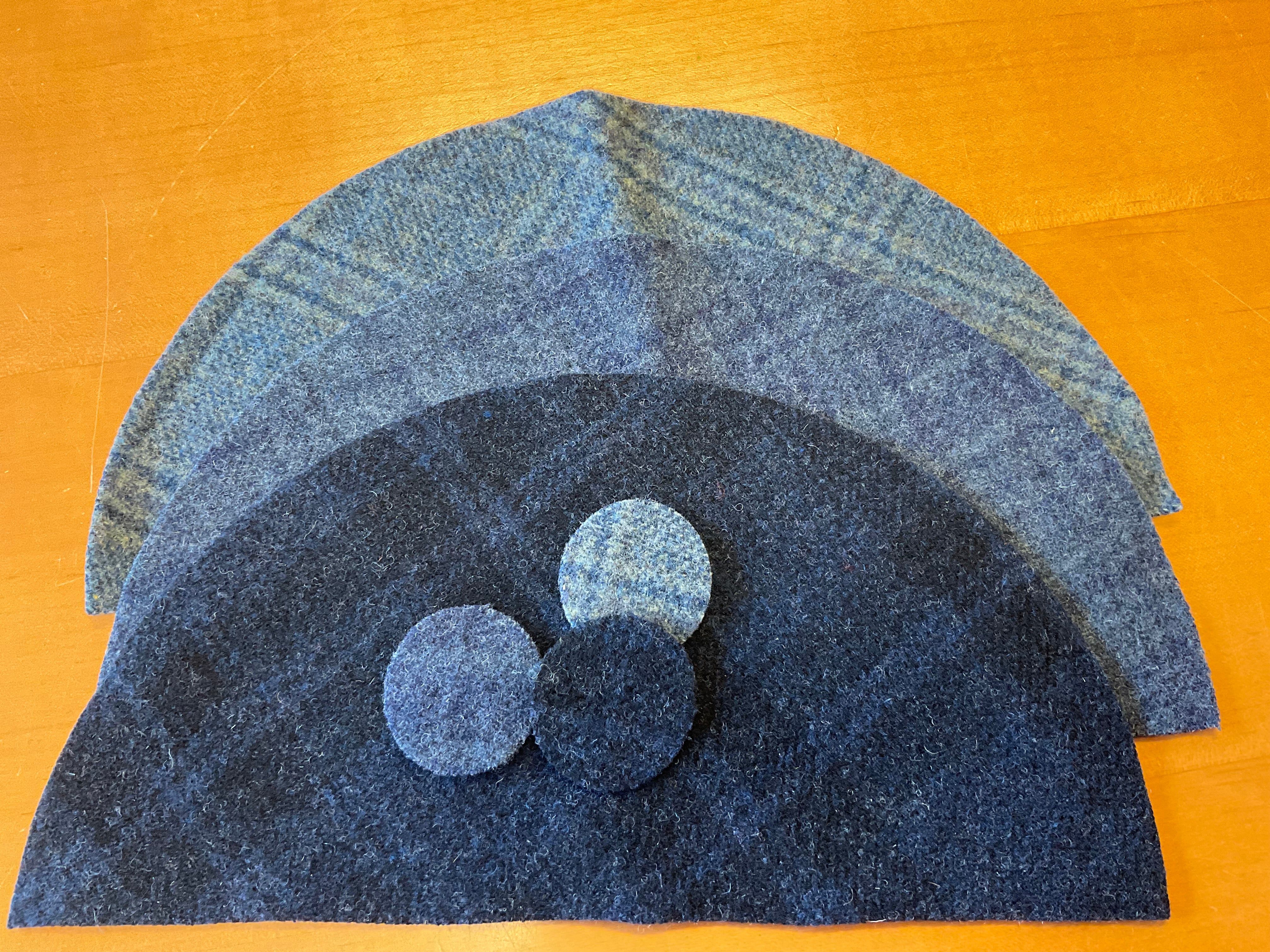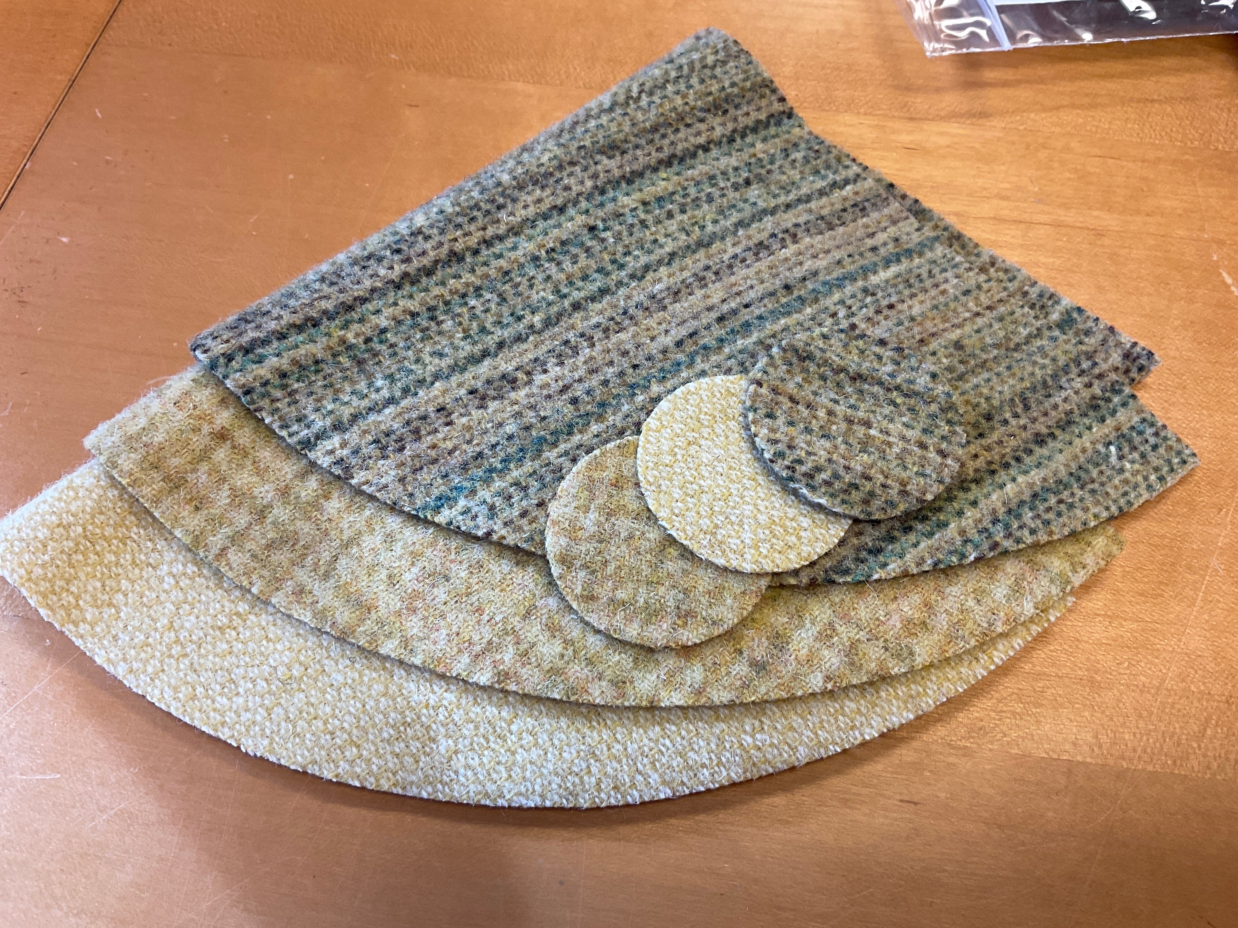 We made stuffed wedges to fill three of the spaces in this little spinning tin “thingy” It makes the perfect pincushion and thread holder! It comes with the pre cut wool, the heavy duty magnet, our cute little ruler and you can whip this up in an evening! It measures 8 inches high and 6 inches wide. You will need a needle, thread and stuffing to complete. Glue is optional, I did not glue mine in, That way I can take out and use the wedges. I wanted to add two little eyes and ears and a tail, because they look like fat little mice to me but mom said no!