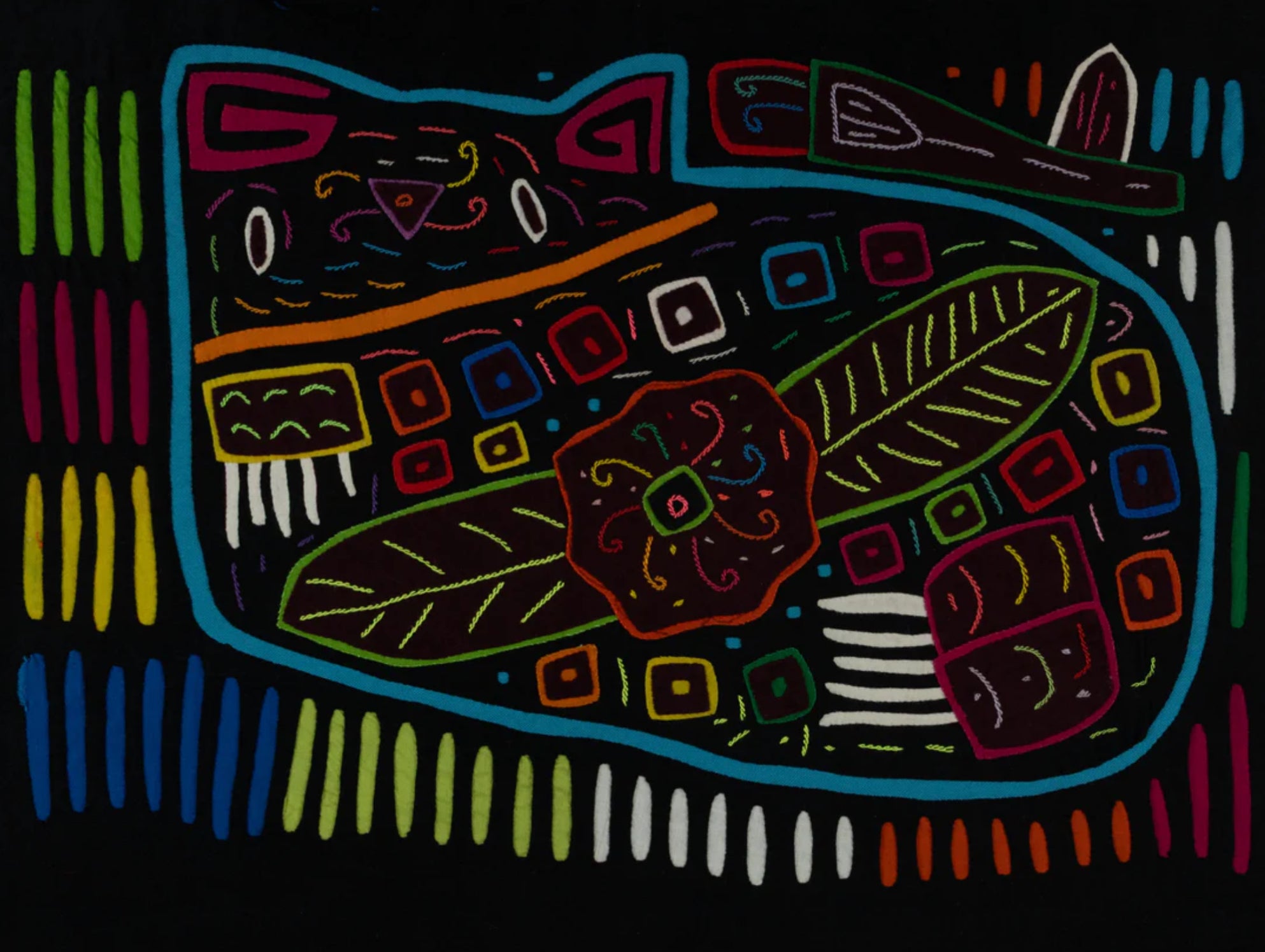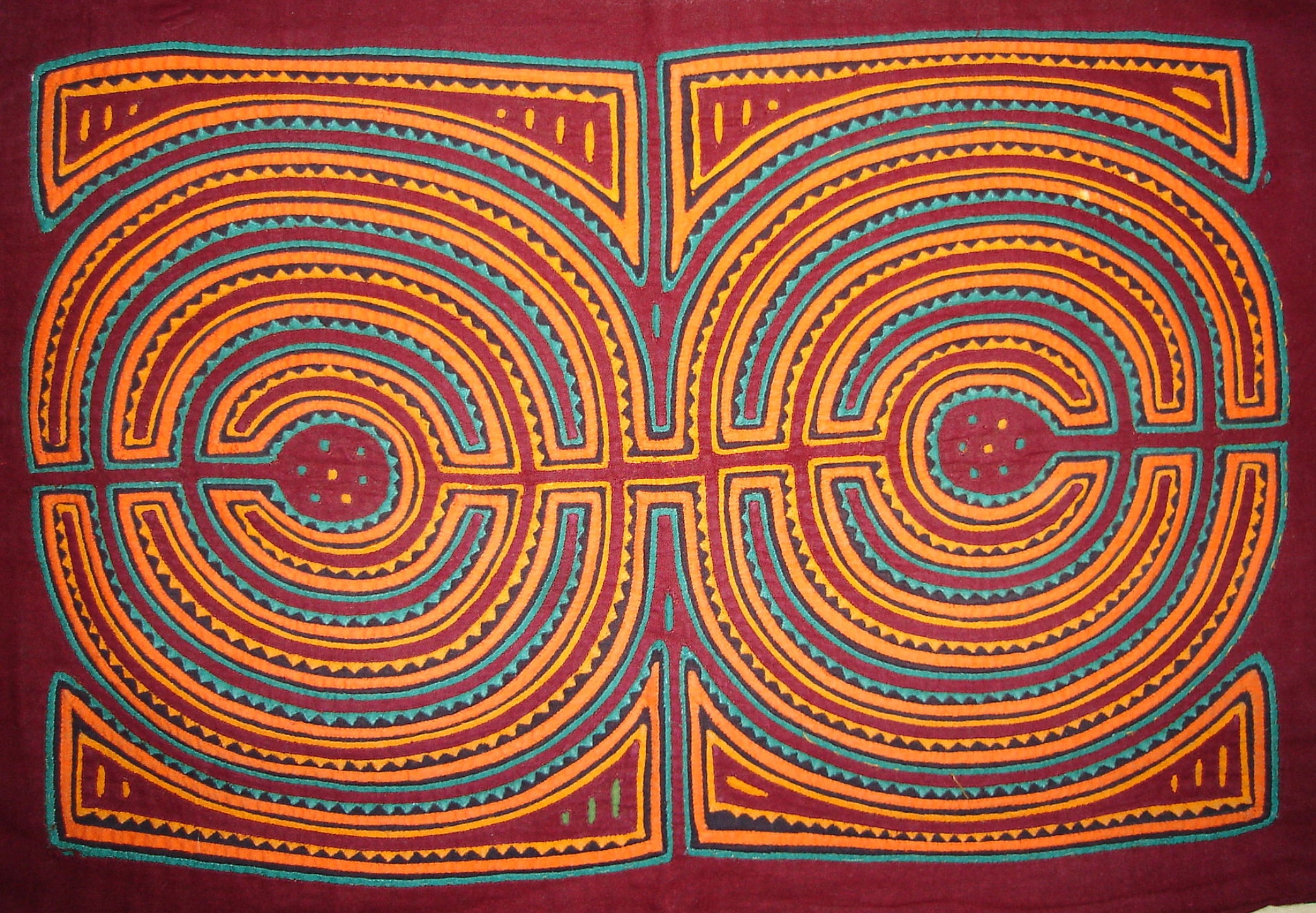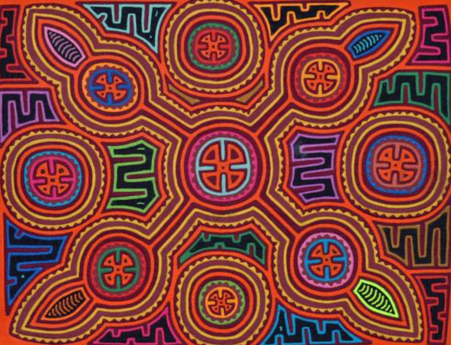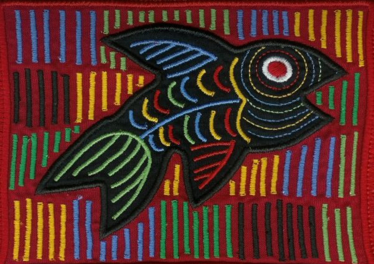 But the Mola or Molas is a hand-made textile that forms part of the traditional women's clothing of the indigenous Guna people from Panama. Hmmm. Interesting. Want to learn more? Come to class with us! Feb 20-22 or March 6-8 Michele Micarelli will be teaching with us again and the class will focus on Mola’s. The class size will be small, only 12 students for each class session She is designing the patterns along traditional lines and will help you color plan a wild vibrant piece of art that will make a great small table mat, pillow, wall hanging or rug. Or help you create one with your color palette, to work in your home, but with the Molas design theme!