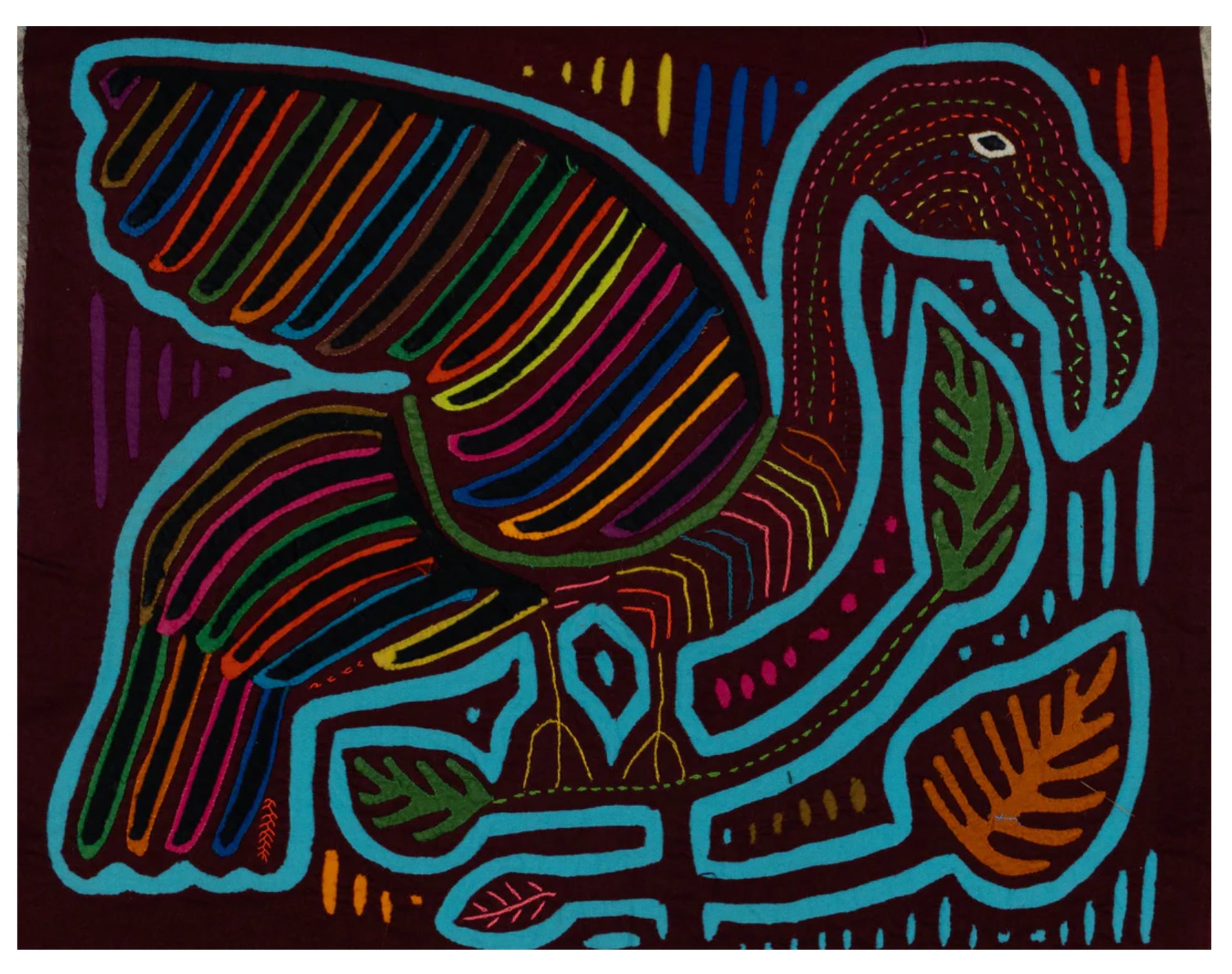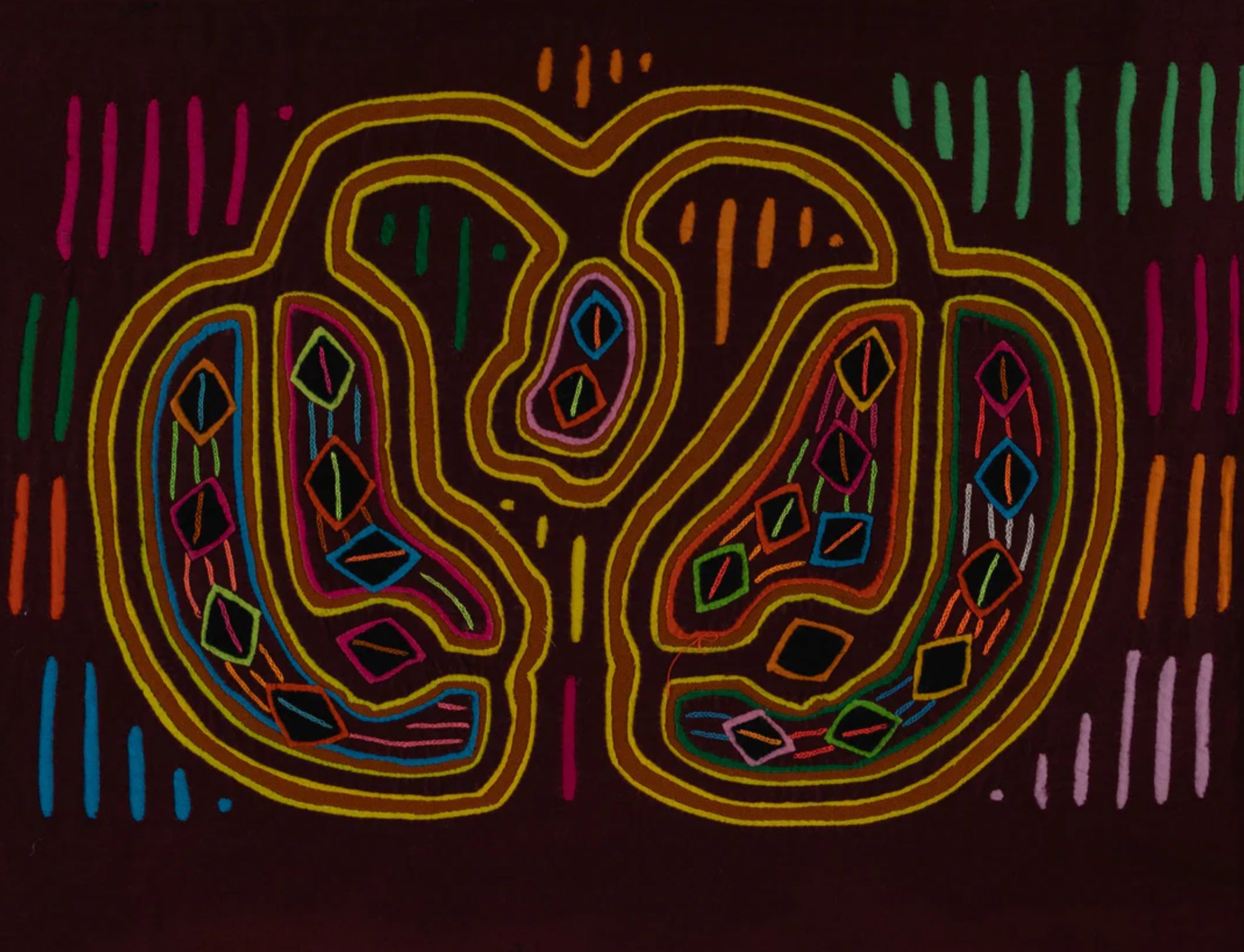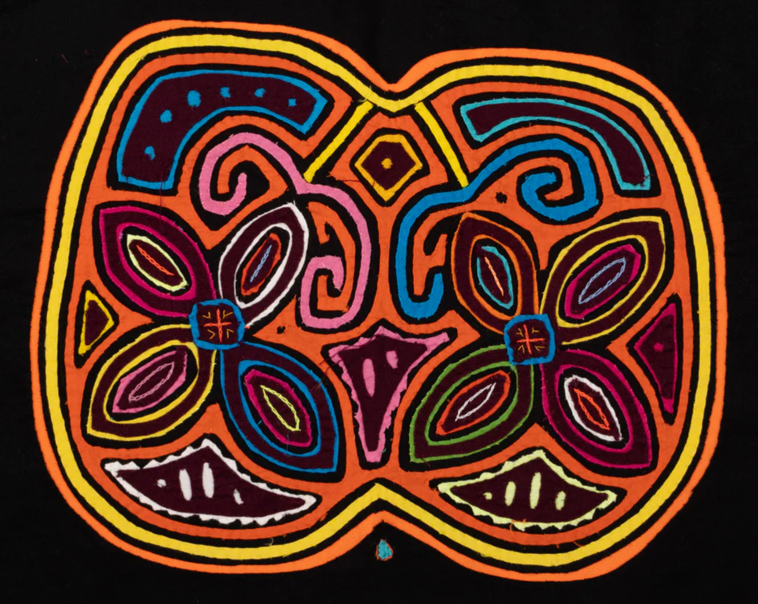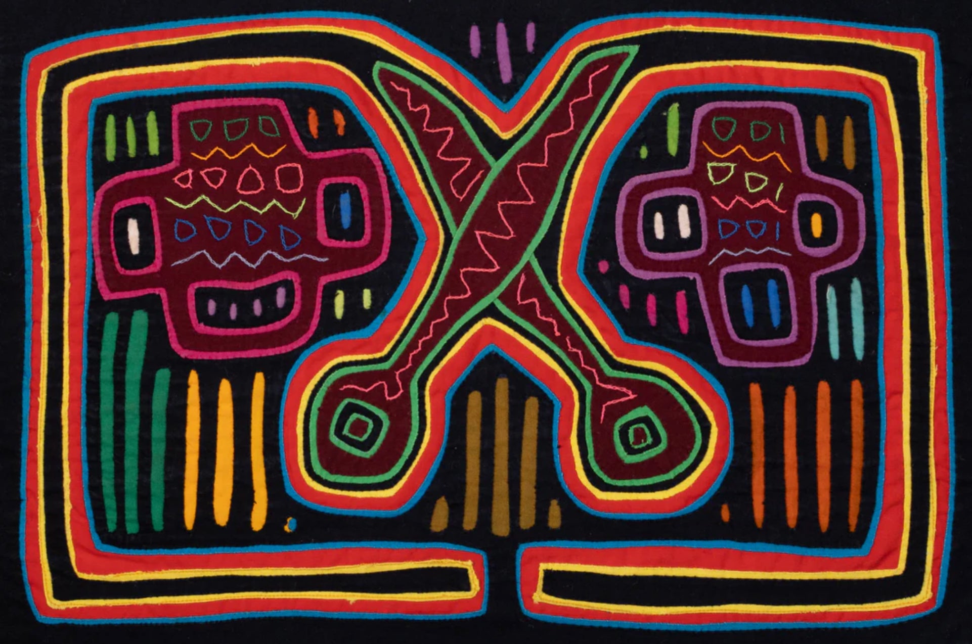 But the Mola or Molas is a hand-made textile that forms part of the traditional women's clothing of the indigenous Guna people from Panama. Hmmm. Interesting. Want to learn more? Come to class with us! Feb 20-22 or March 6-8 Michele Micarelli will be teaching with us again and the class will focus on Mola’s. The class size will be small, only 12 students for each class session She is designing the patterns along traditional lines and will help you color plan a wild vibrant piece of art that will make a great small table mat, pillow, wall hanging or rug. Or help you create one with your color palette, to work in your home, but with the Molas design theme!