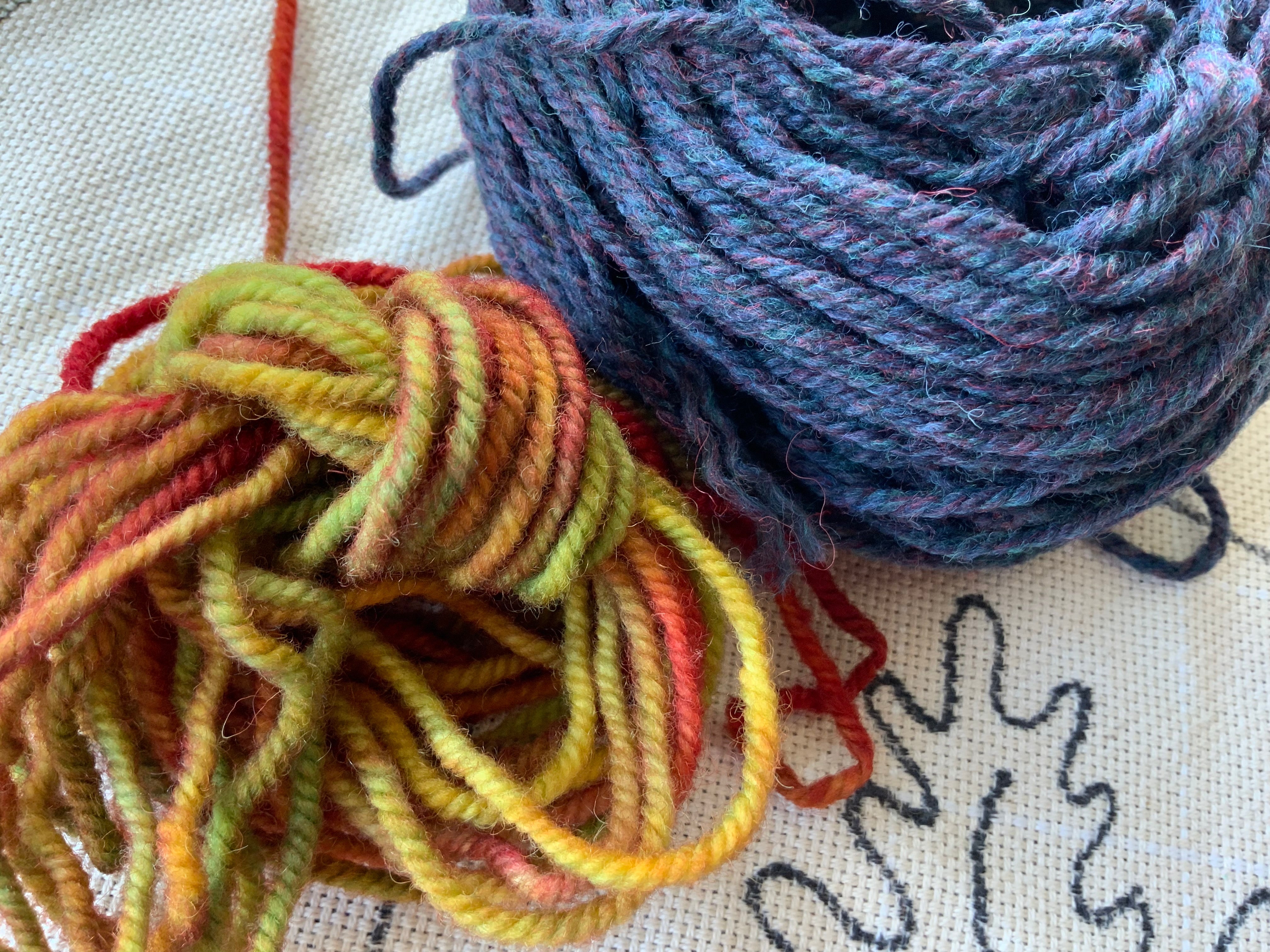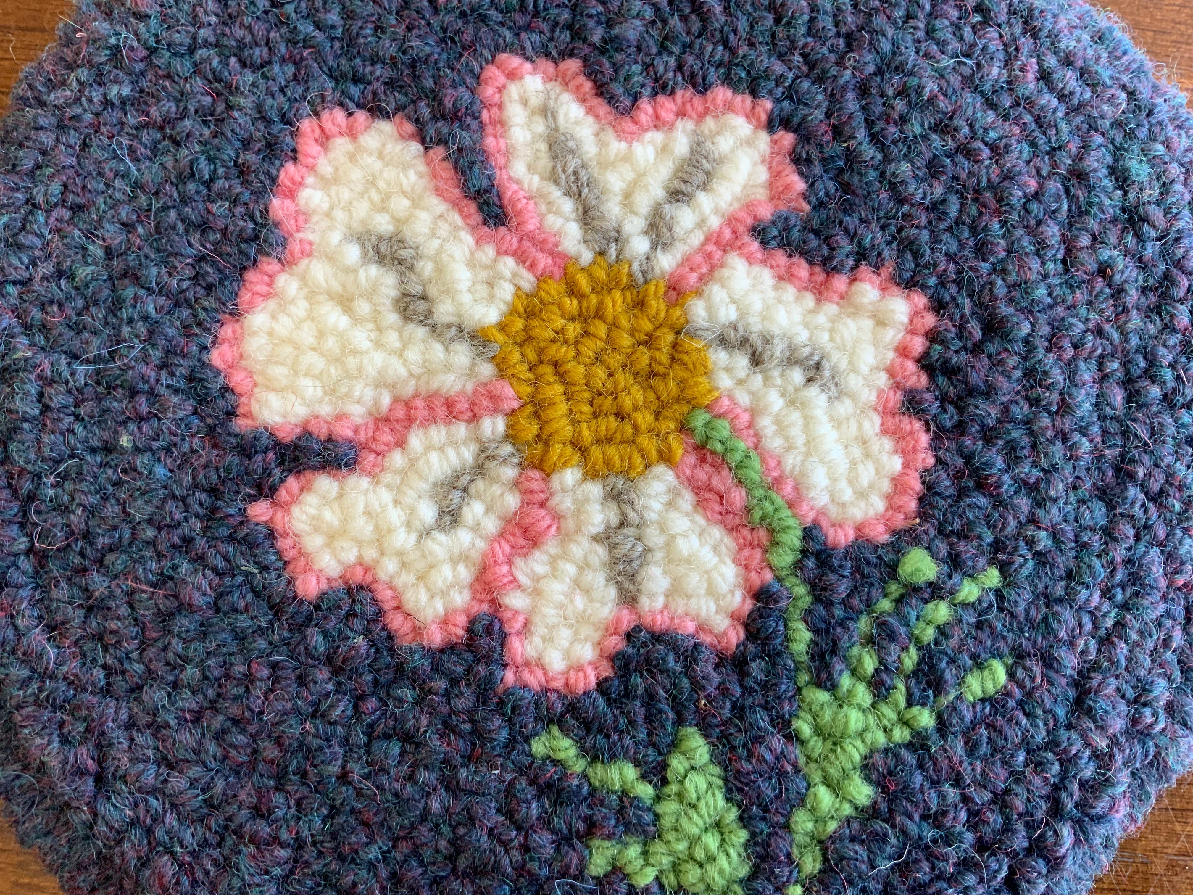 These sweet beginner kits are perfect to lean how to use the Oxford punch needle. It is a hand drawn pattern in a 7 inch circle on our monks cloth and you can order just the pattern to use your own yarns or wool strips or order the full kit with the yarn.