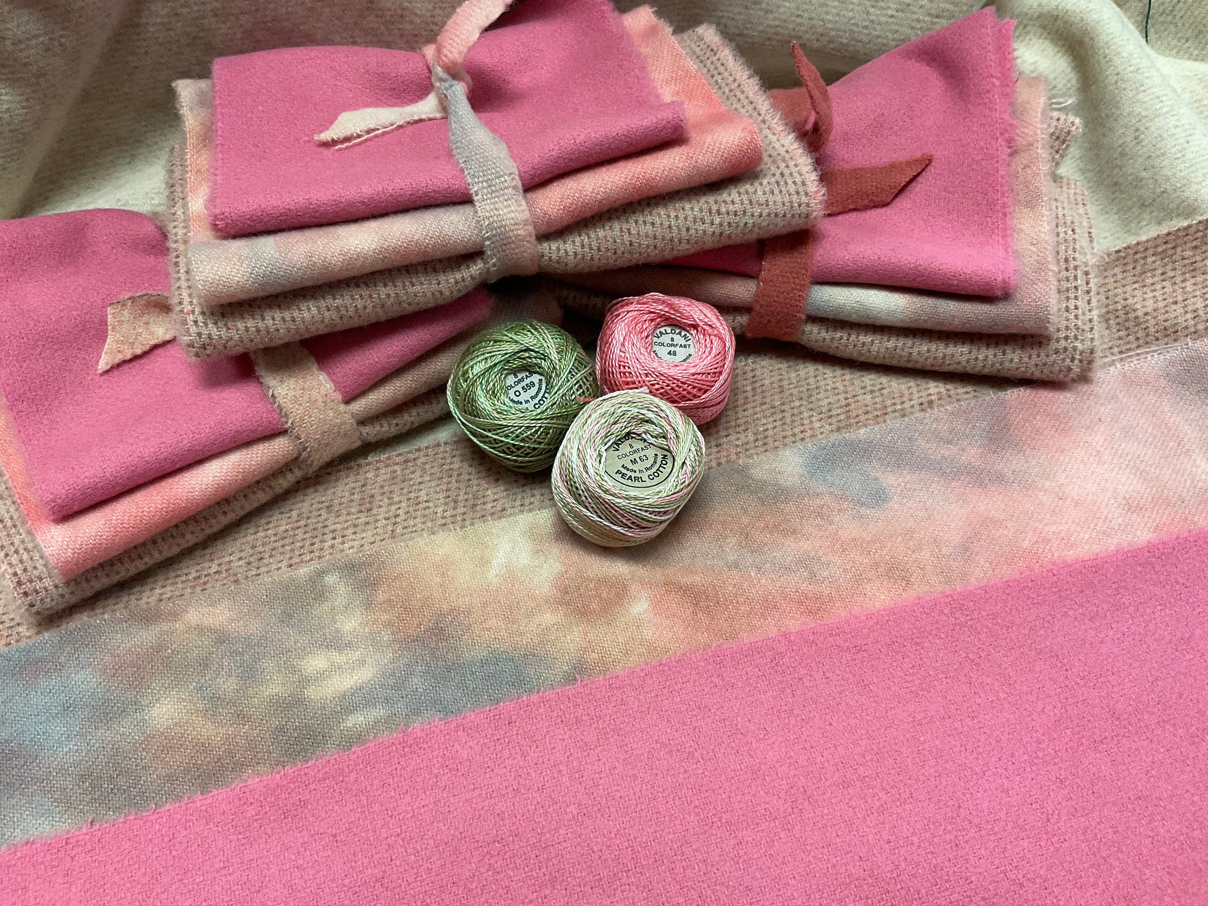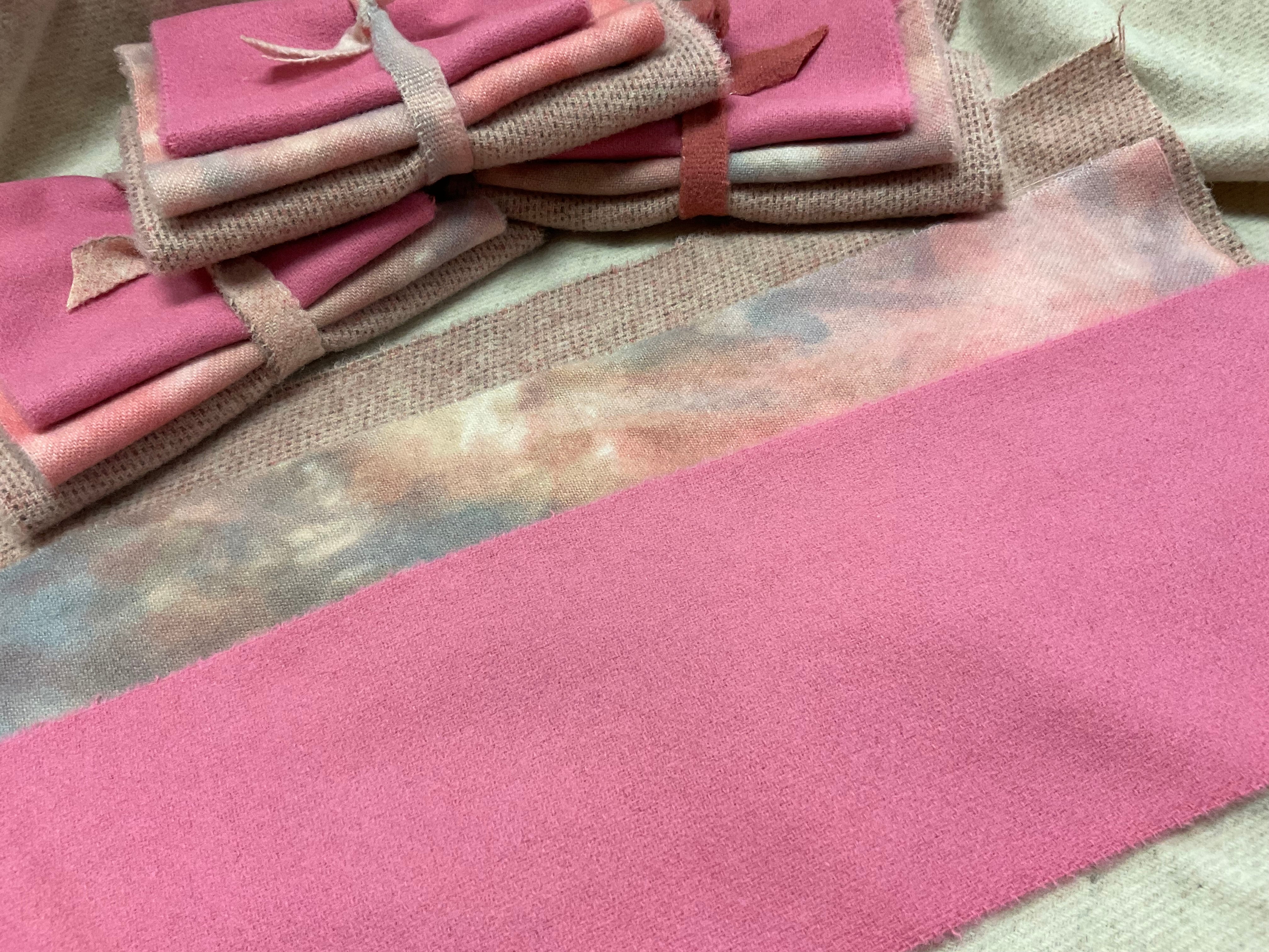 Our newest Bundle of washed wools ready to work with! These are fat 1/16 of a washed as is wool 7.5x17, an over dyed wool roughly 7.5x17 and a solid 5.5x17 from the Rebekah Smith wools