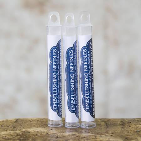 Primitive Gatherings Embellishing Needles are perfect for sewing Bullion Knots and Drizzle Stitches. There are 12 needles per tube.