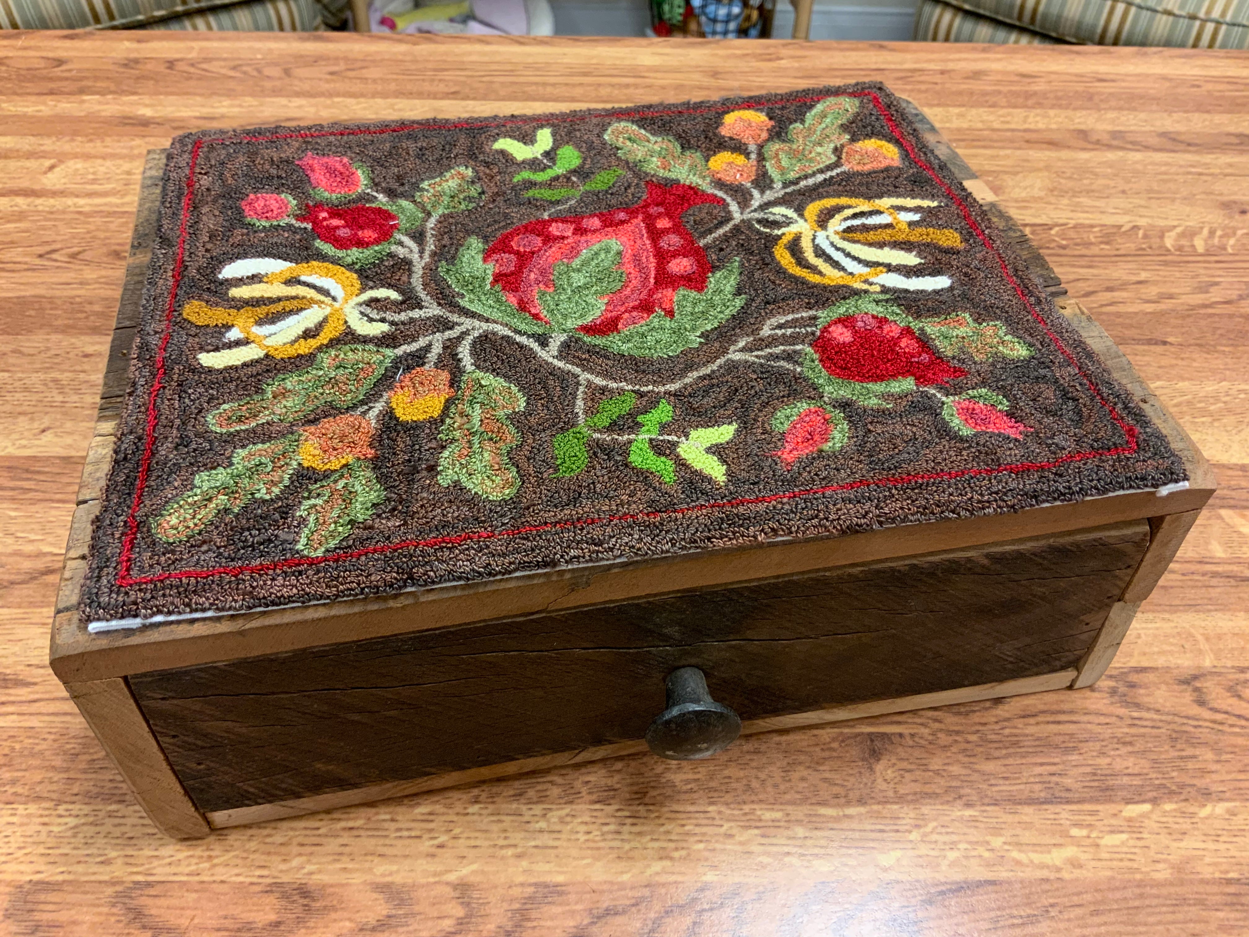 All of our punch needle patterns are Hand drawn on weavers cloth. We use the ultra punch punch needle. And love to work with our hand dyed merino or Valdani #8 pearls cotton. Our sample was punched with the Ultra Punch medium needles height #2