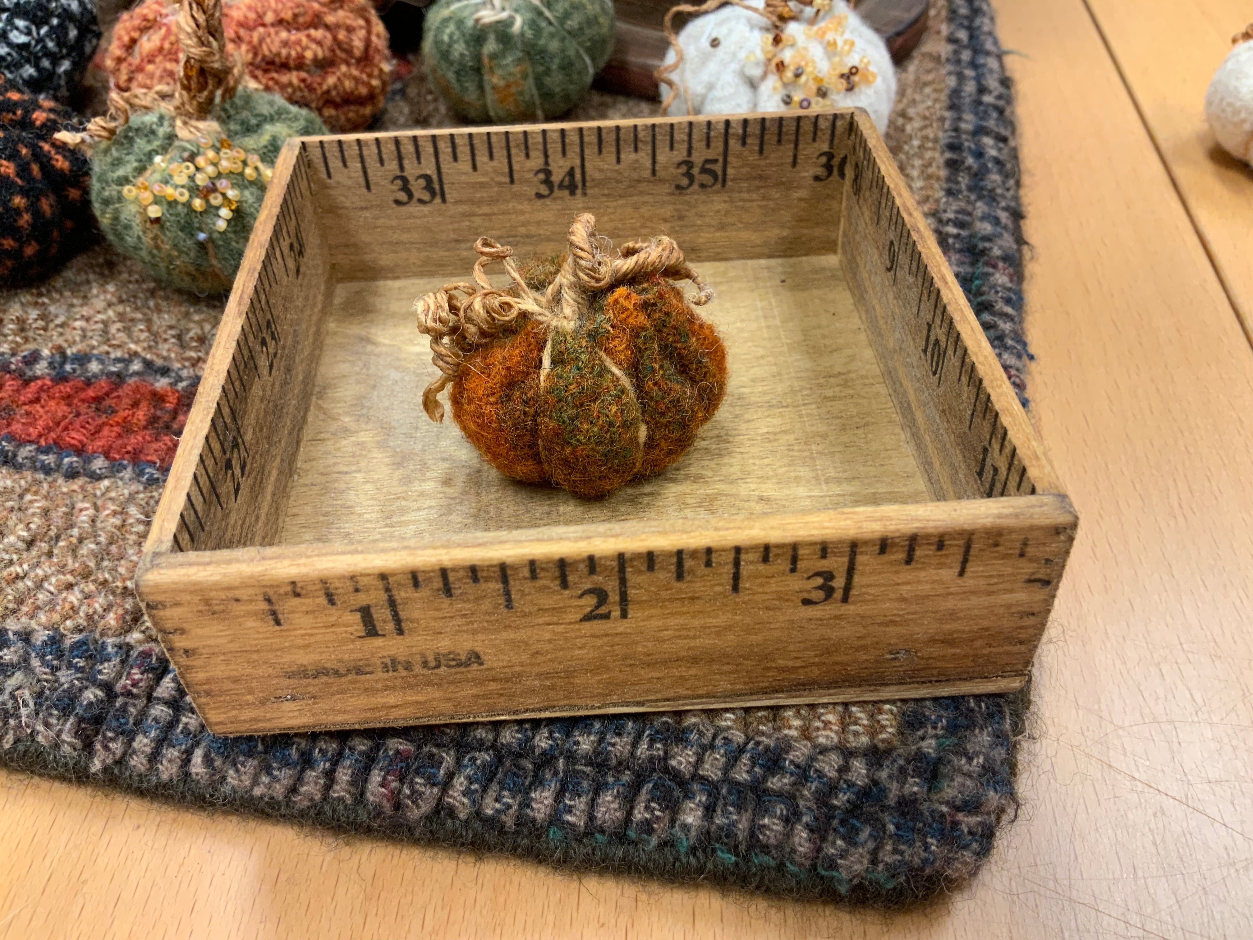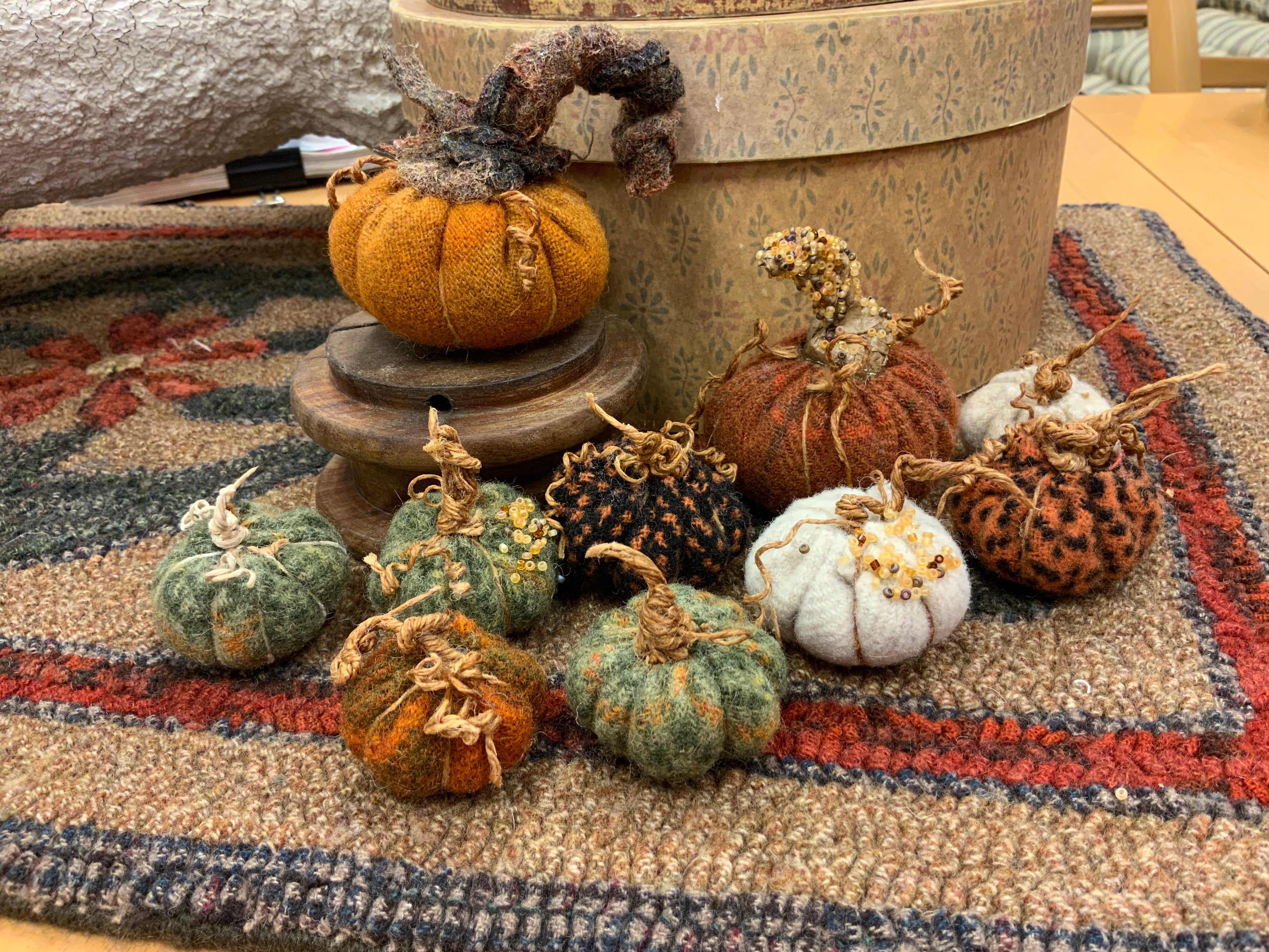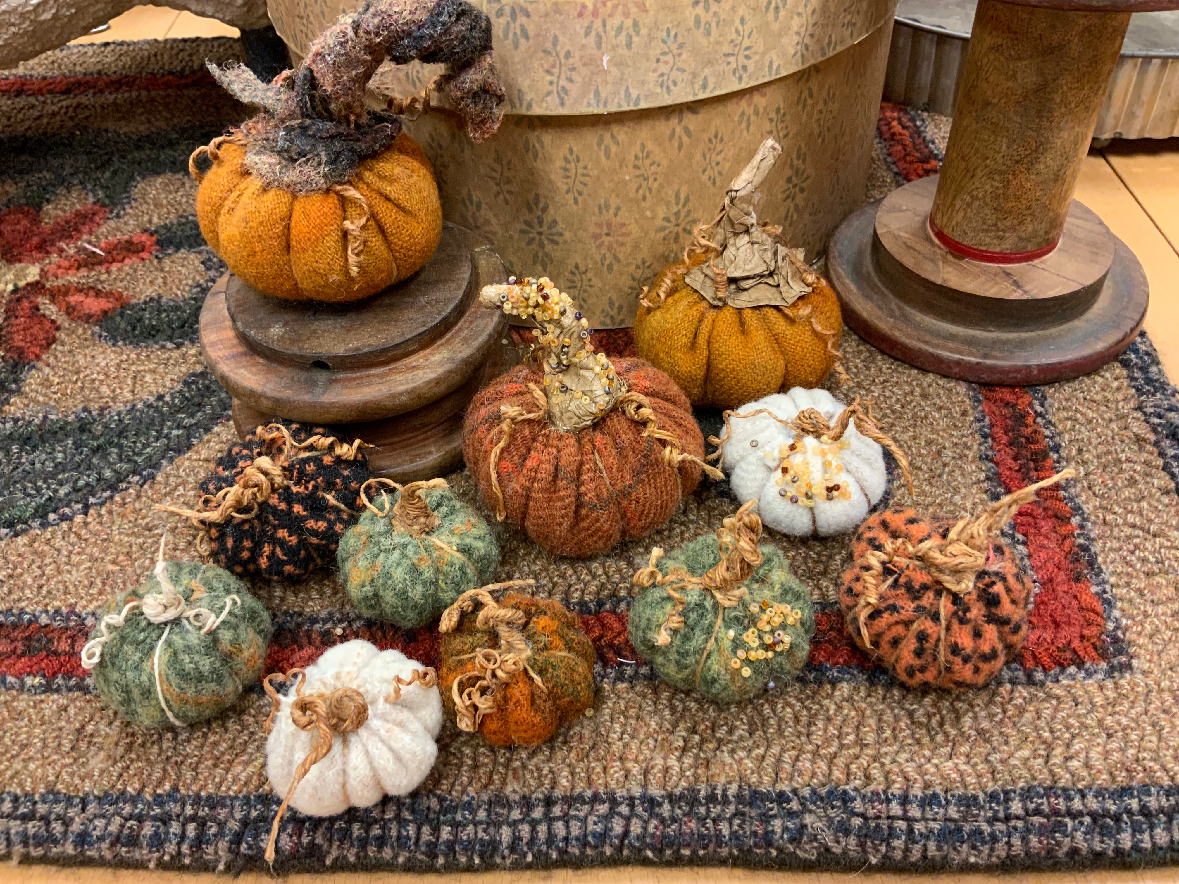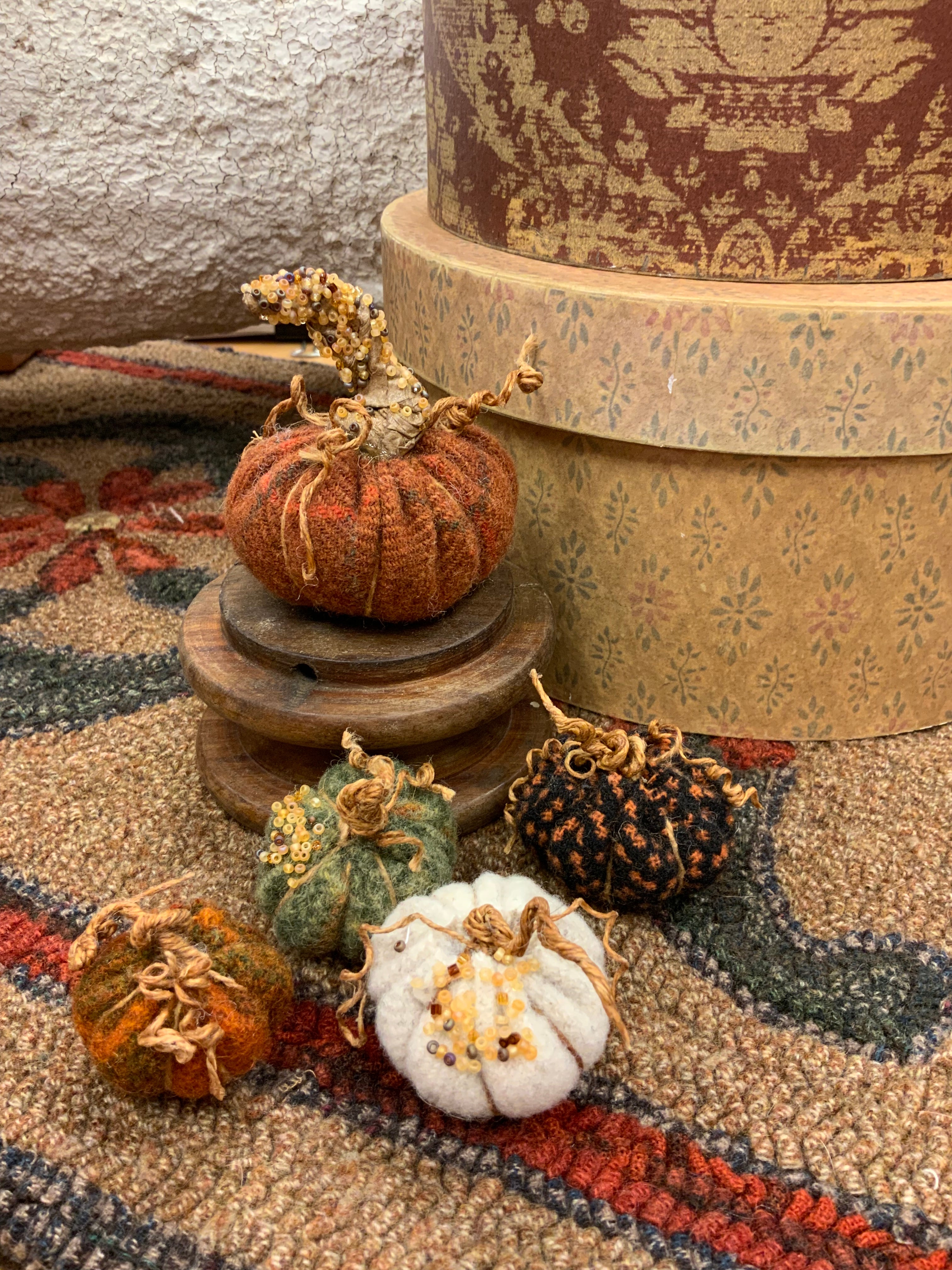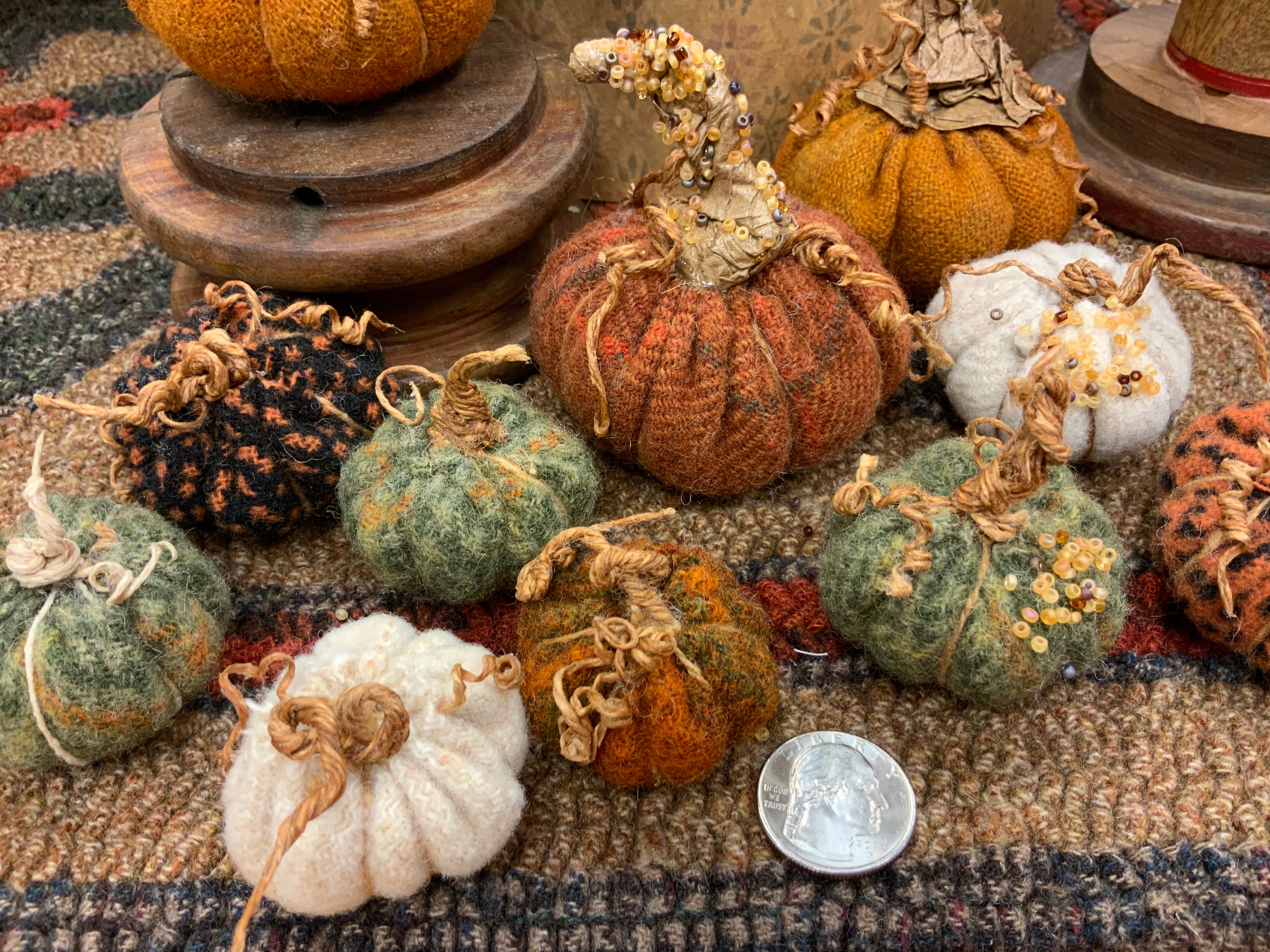 Teeny tiny, itty bitty little punkins! The frost will soon be on the pumpkin and this kit let’s you keep your little patch forever! This cute kit makes five tiny pumpkins. I think an tiny old bear would be adorable holding one in his lap!