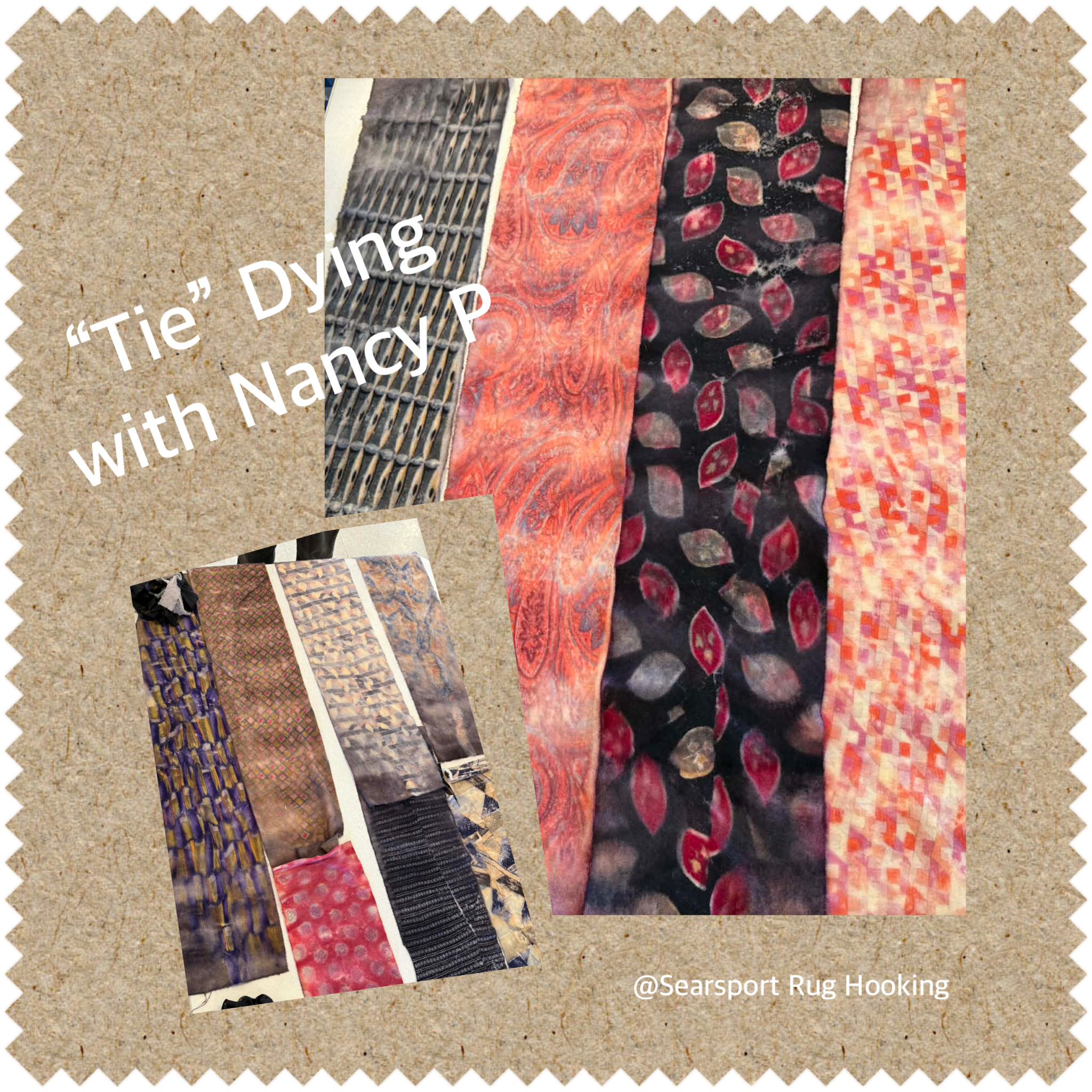 Afraid of dyeing? Worried you don’t have the right stuff? Well Nancy strips it down to the basics and recycles old silk ties and you will love the results!!! All you need for class is a seam ripper and a pair of scissors. You will go home with dyed wool from class and want to head right to the closest thrift store!! Remember Nancy is providing everything but a seam ripper and scissors!
