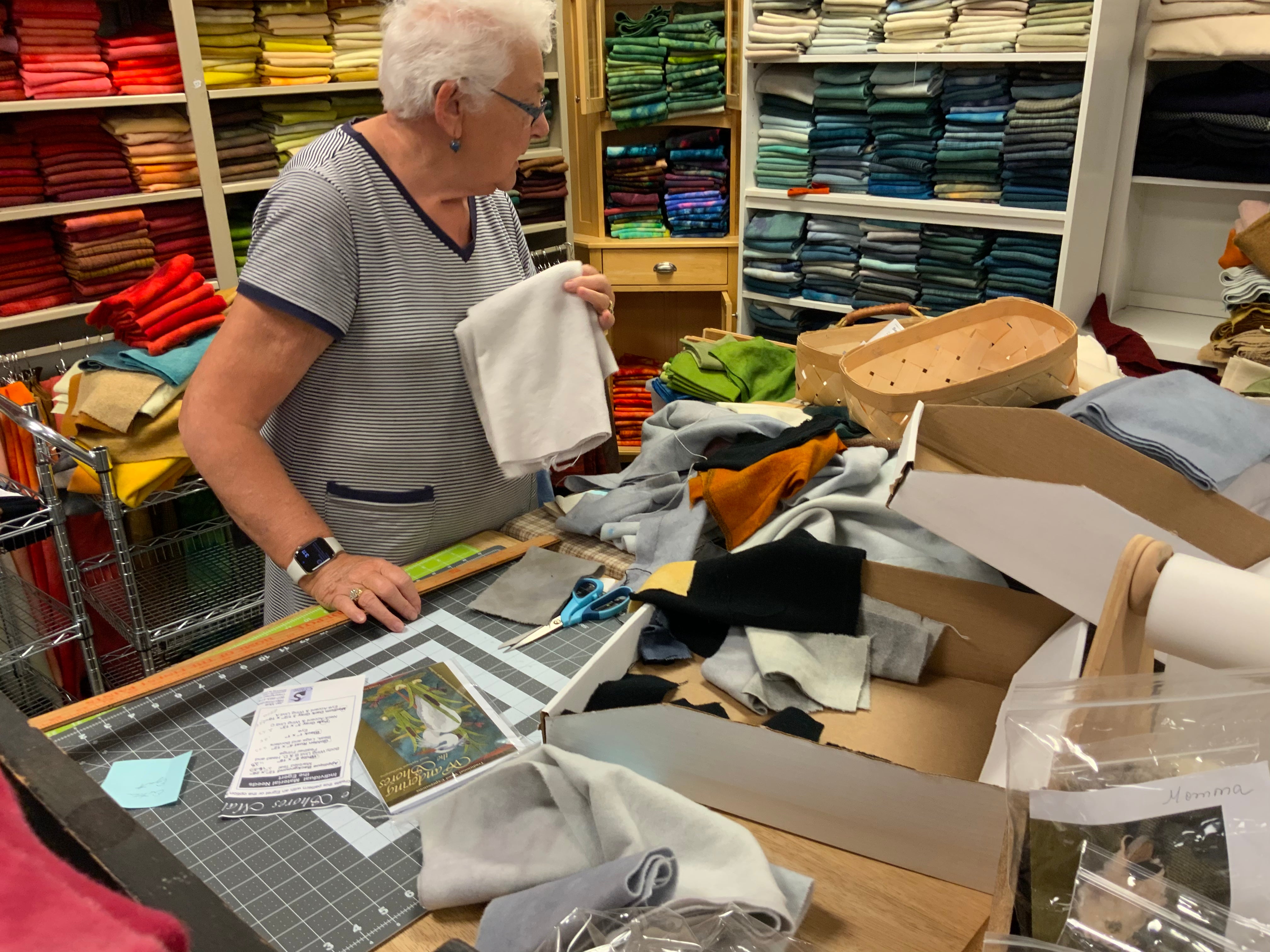 Jan used Searsport Rug Hookings rich hand dyed wools to create this timeless wool appliqué piece. Incorporated into the design is fun embroidery stitches that give the piece an additional layer of visual experience.