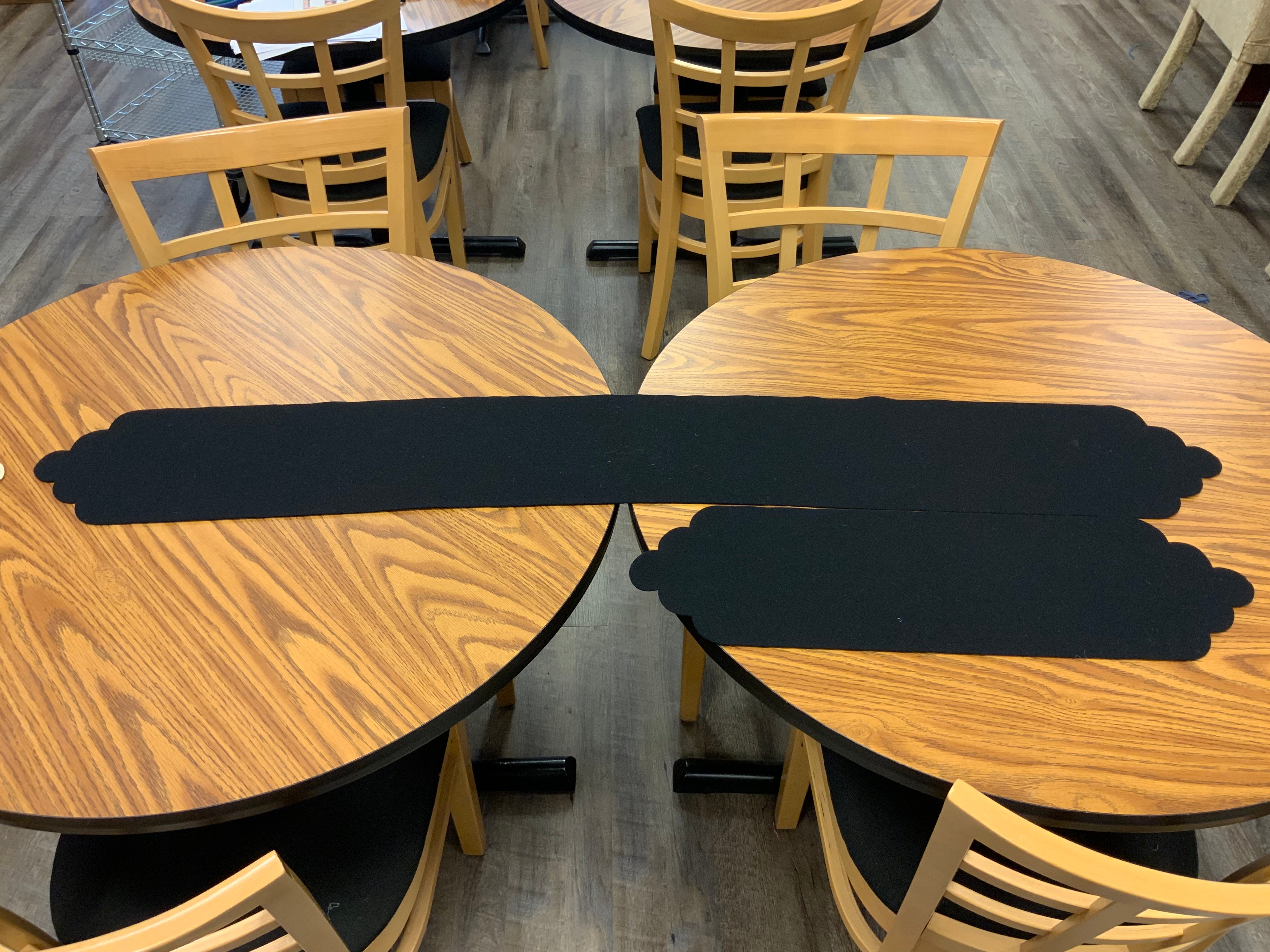 This is for our new appliqué long table runner and they are 7x52 inches. We have our small standard one next to it.