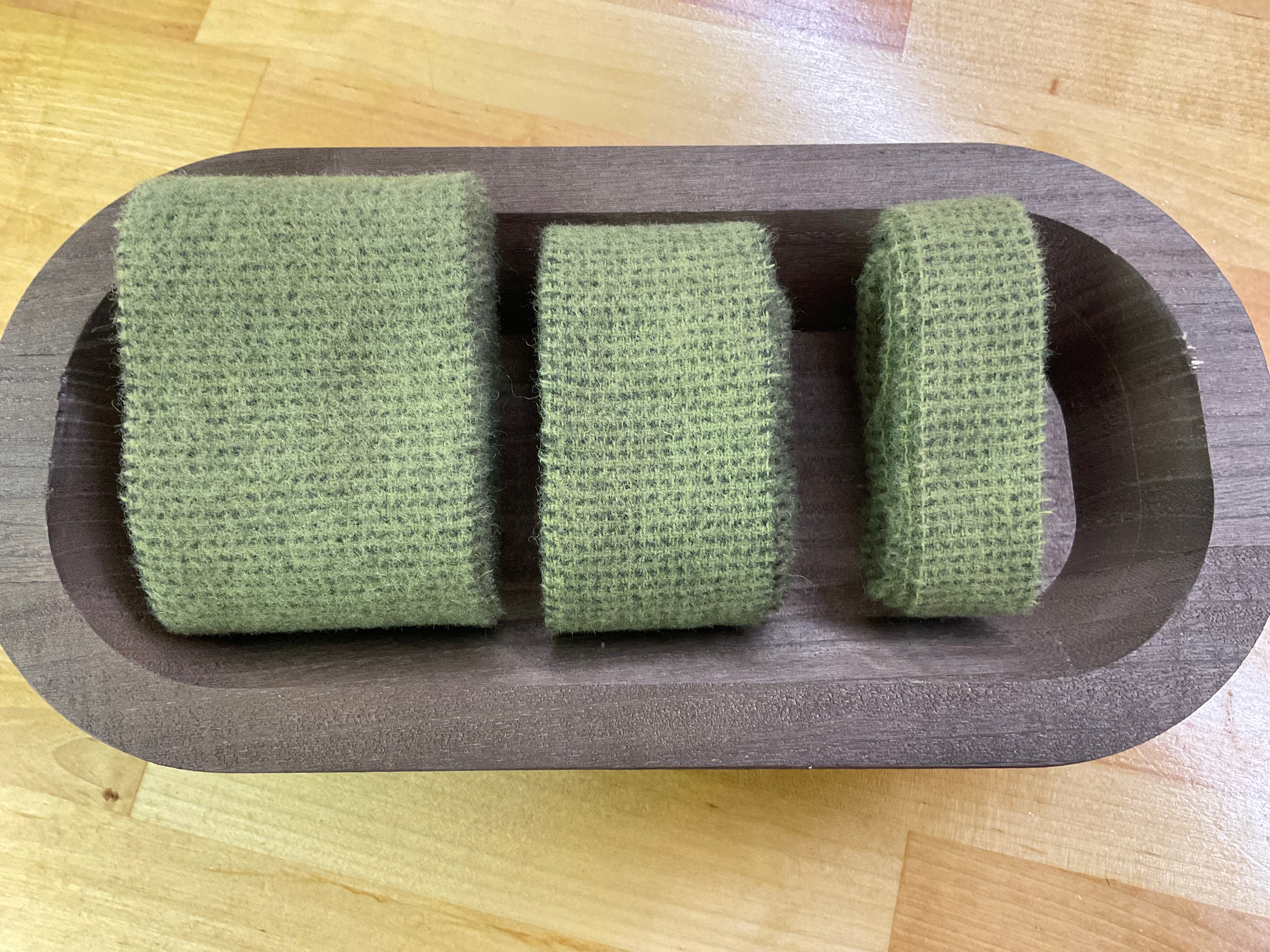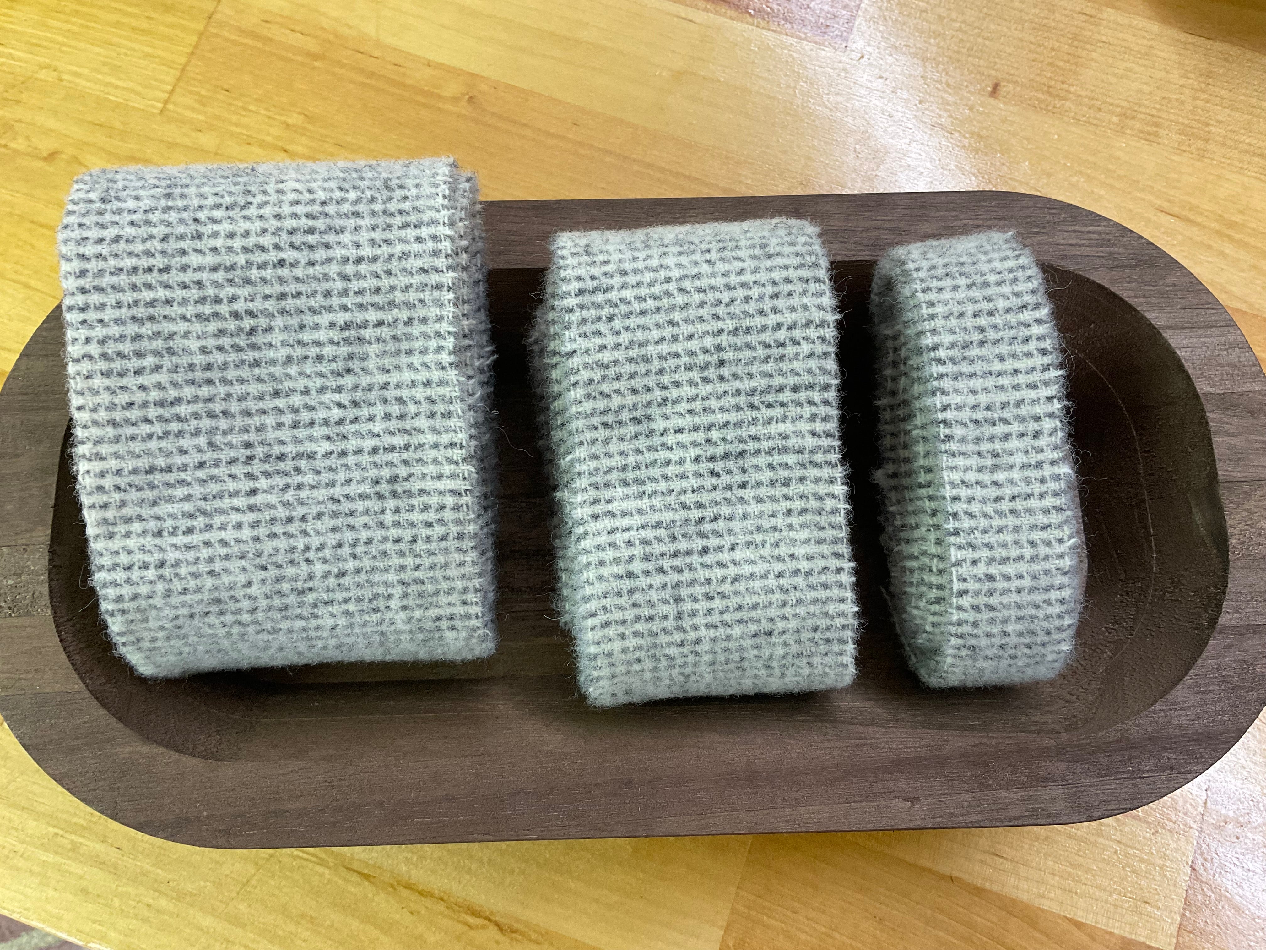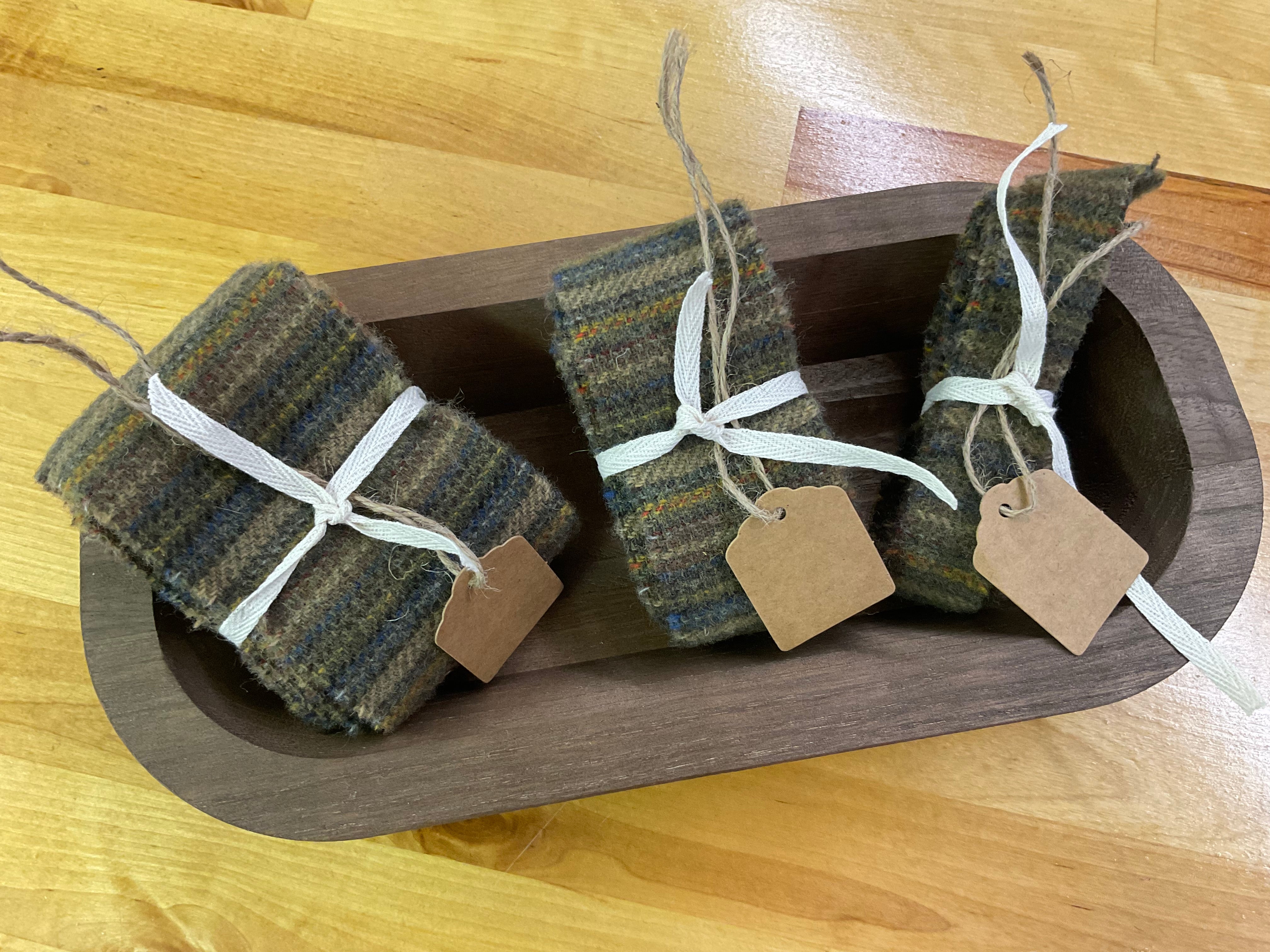 We have so many ask for the wooly ribbons we use on our wreaths so we decided to offer them to you. These are all 100% wool that’s been washed and fulled and ready to work with. It comes in 1 inch, 2 inch and 3 inch widths and is roughly 57 inches long. Each one is tied with a fun kraft hang tag to add to your wreaths or gifts.